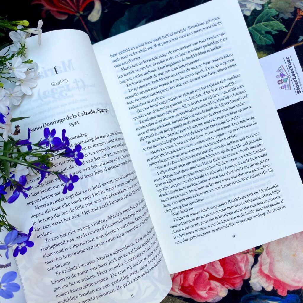 In Begraaf mijn botten in de nachtelijke grond volgen we meerdere verhaallijnen. De twee rode draden zijn het heden, het nu met Alice die gaat studeren. En het verleden waar we starten met María in 1532. Natuurlijk raken beide tijdlijnen met elkaar verweven. Maar hoe blijft best lang nog even gissen. Het verhaal van María is benauwend. Een jonge, vrije vrouw met rode haren, dat werd als gevaarlijk gezien. Uithuwelijken was de toekomst en eenmaal op dat punt moest ze zich onderwerpen aan haar man, die met zijn plompe gewicht op haar rolt. Dit alleen voor een kind in haar buik. María snakt naar vrijheid en vooral naar liefde, maar voelt dit bij vrouwen. Iets wat natuurlijk in die tijd als des duivels werd gezien.