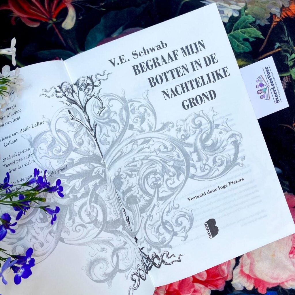 Lezen in Begraaf mijn botten in de nachtelijke grond gaf mij een aangename leesvertraging. Ik had geen haast in deze wereld van V.E. Schwab. Ik vond het heerlijk dwalen met de karakters en de emoties bereikten me moeiteloos. Wat een genot vond ik deze roman. Er zijn misschien geen grote plottwists, het tempo ligt laag, maar ik had dit niet anders willen zien. Het begin is net zo sterk als het middenstuk en het einde. Ik ben alleen maar meer van V.E. Schwab gaan houden. Hoog tijd, als mijn gigantische recensiestapel geslonken is, om de andere twee boeken op te pakken die ik nog niet gelezen heb van haar!