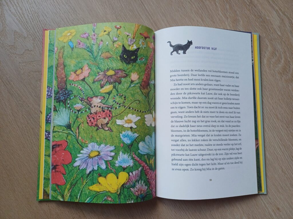 Ervaar samen met je kinderen dat gevoel van vroeger en neem ze mee op reis met Jodokus. Dat maakt het boek ook geschikt voor wat jongere kinderen. Hier is het boek al eens gepakt door de kinderen. Ja, dat kun je zien aan de pagina’s soms (ook bij De gouden gitaar, check de foto’s maar eens). En dat vind ik wel eens jammer. Aan de andere kant mag je ook zien dat een boek gelezen is. Een boek dat maar in de kast blijft staan is ook niets. Daarnaast vind ik het zelf heel leuk dat de kleine illustratie bij het hoofdstuk staat voor iets dat je in het hoofdstuk kunt lezen. Zoals de klomp (dat wordt een boot) of een zwarte kat (die Mia ziet lopen).