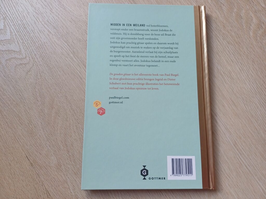 Wat krijg ik hier toch een nostalgische gevoelens van. Een heerlijk boek om voor te lezen of samen met je zoon of dochter te lezen. Samen voor het slapen gaan verdwalen in het verhaal van Jodokus de veldmuis. Het is het eerste boek van Paul Biegel. Omdat hij 100 jaar geleden geboren werd is dit verhaal, De gouden gitaar, opnieuw verschenen in een prachtige uitgave. Wellicht ligt het aan de leeftijd, maar ik kan hier echt van genieten.