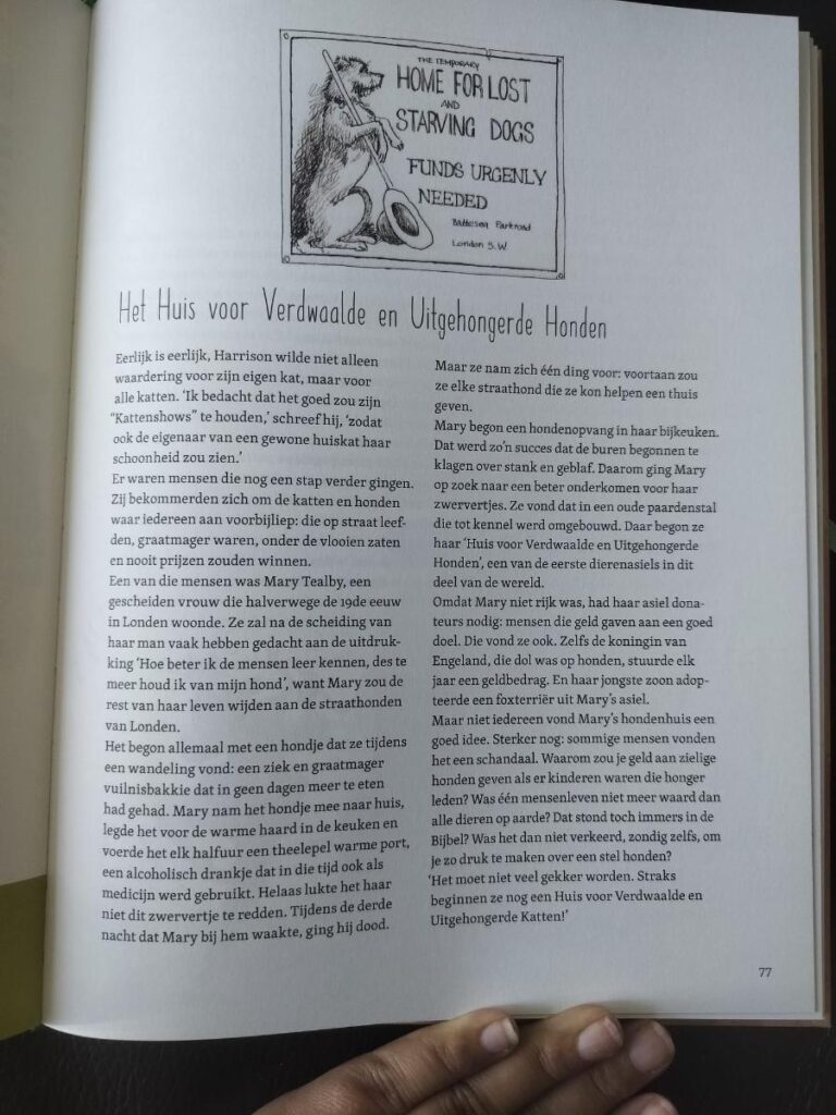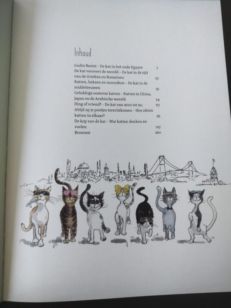 Ik ben erg onder de indruk van De Kat. Het is een heel informatief boek, maar ook grappig en speels. De opmaak is heel speels, wat ook bij het onderwerp past. De illustraties zijn heel verschillend en de teksten ook. Hierdoor is het ook heel geschikt om in de klas te behandelen, om te vergelijken en te kijken naar de overeenkomsten en verschillen in de teksten. Het boek is vlot leesbaar, ondanks dat het met 176 bladzijden best een dik boek is. Als hondenliefhebber heb ik nu toch meer bewondering voor katten gekregen. Ze zijn al zo lang op de wereld en hebben veel meegemaakt.