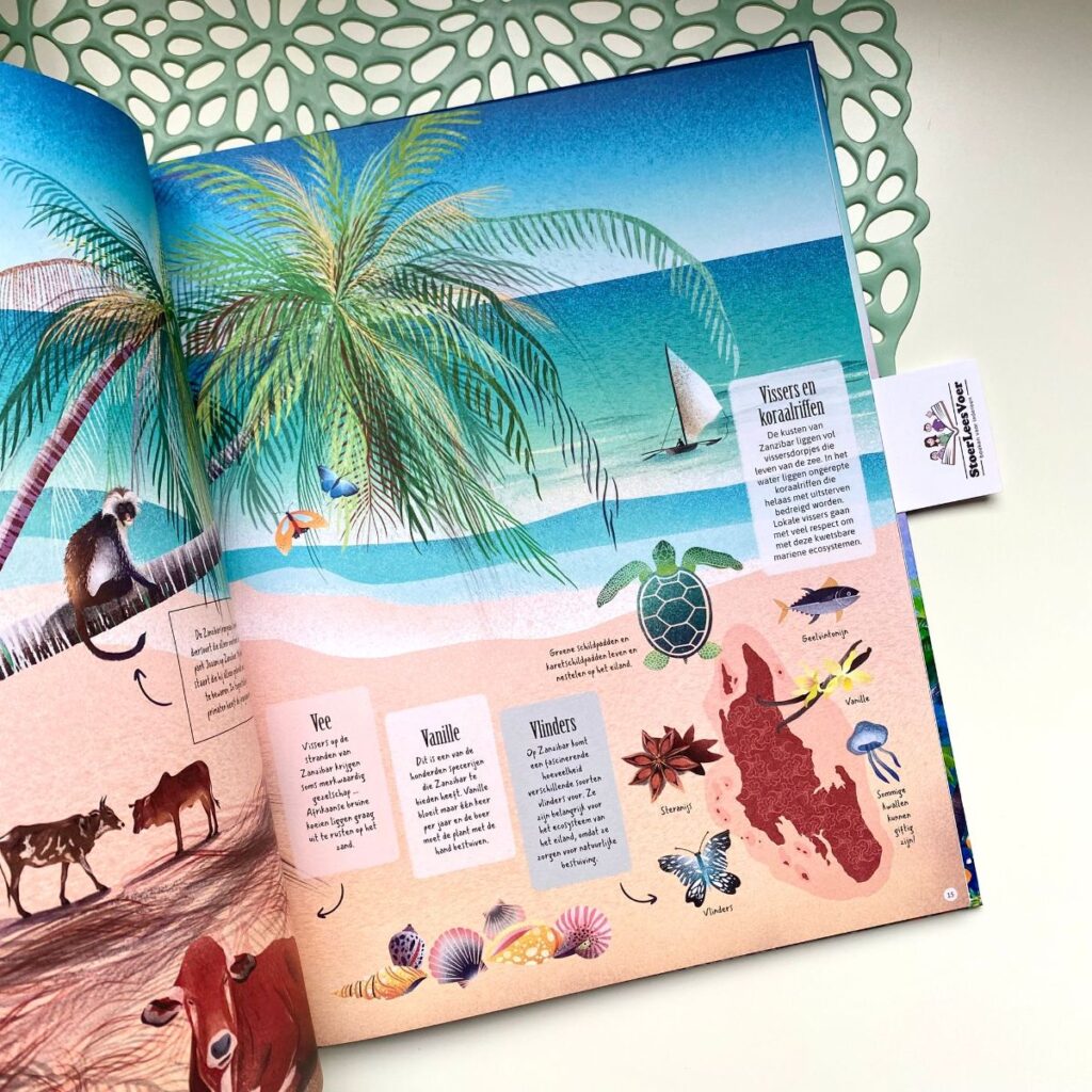 De mooiste eilanden van de wereld is inderdaad geschikt voor jonge kinderen vanaf ongeveer 6 jaar. Door de illustraties is het toegankelijk, ook het navigeren in dit weetjesboek. De teksten vind ik wel echt informatief vol met rijke en moeilijke woorden. Het zelf lezen is juist meer voor wat oudere kinderen. Maar het samenlezen is natuurlijk ook net zo fijn.