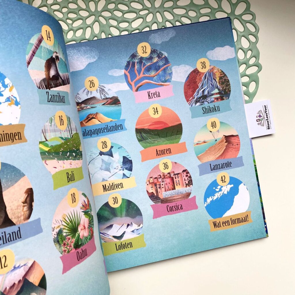 Het leuke aan De mooiste eilanden van de wereld dat je kan wegdromen vanaf de bank, of dat je misschien wel je volgende vakantie erdoor gaat boeken. Mijn oudste dochter hoeft niet zo nodig te vliegen en ver weg. Maar toch is het leuk om erover na te denken om op zulke mooie locaties te kunnen lopen. Ik zie nu dat dit boek voor kinderen onder de 12 jaar wordt aanbevolen. Ik heb geloof ik niet veel vaker een leeftijdsaanduiding gezien met ‘jonger dan’. Wij gebruiken hier eigenlijk altijd een vanaf leeftijd.