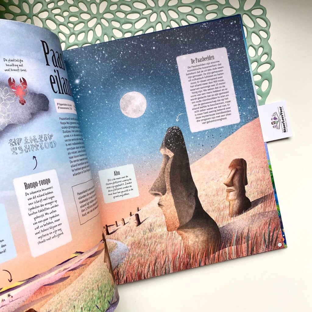 De informatie in De mooiste eilanden van de wereld is gelukkig ook actueel. Zo lezen we bijvoorbeeld bij Paaseiland dat de beelden lichamen hebben, een ontdekking van deze tijd. Wij vinden hier thuis dit een heel fijn boek. Mijn dochters van 6 en 11 vinden het beide een tof boek en ik als volwassene ook. Uitgeverij Mus heeft nog een boek uitgebracht (Op reis door het paradijs) die aansluit bij deze, die gaan we ook snel lezen!