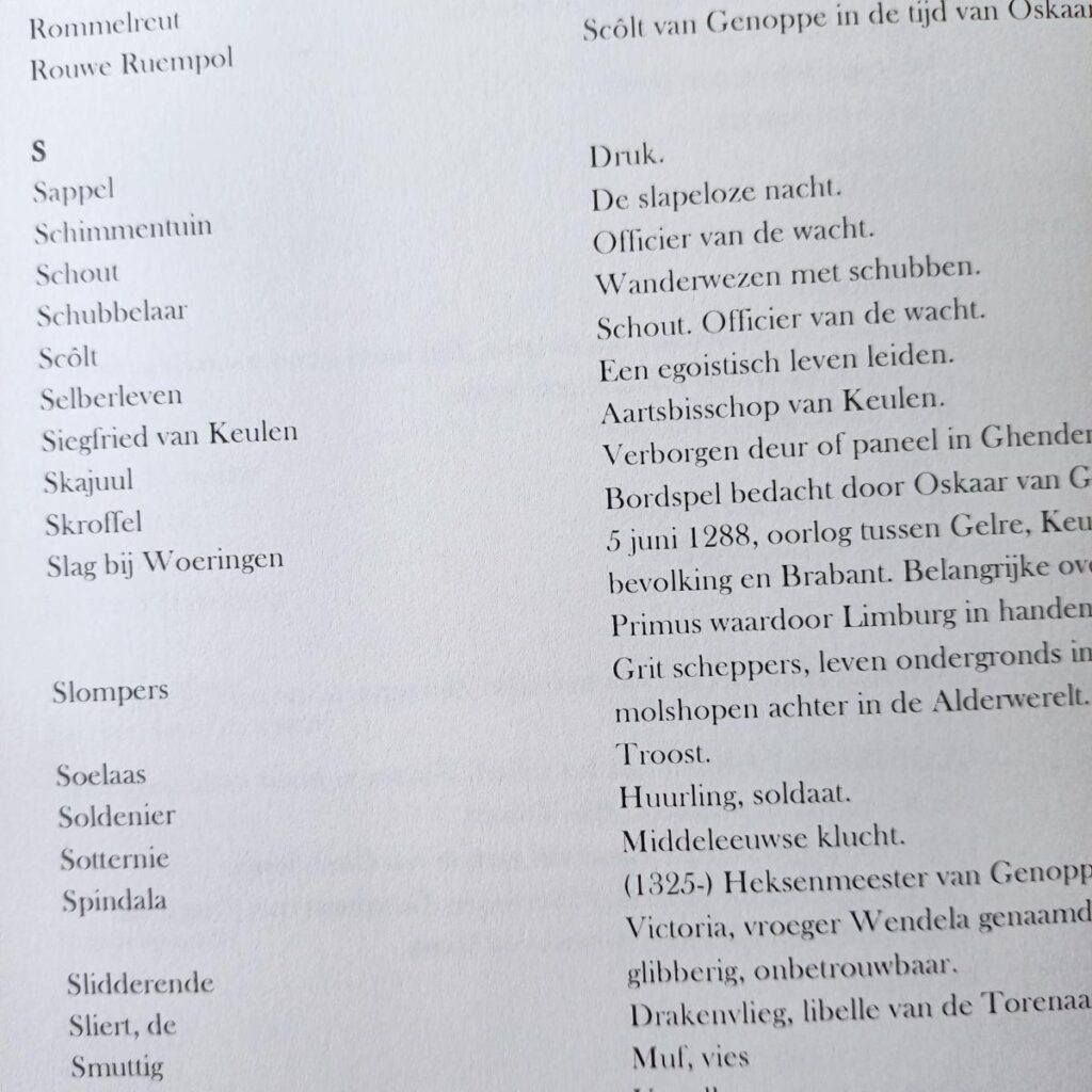 Het boek is überhaupt mooi geïllustreerd. Tevens staat achterin een verklarende woordenlijst, die heel goed van pas komt, want er worden veel oude, en zelfbedachte, woorden gebruikt in ‘De Ramaika-trilogie’.