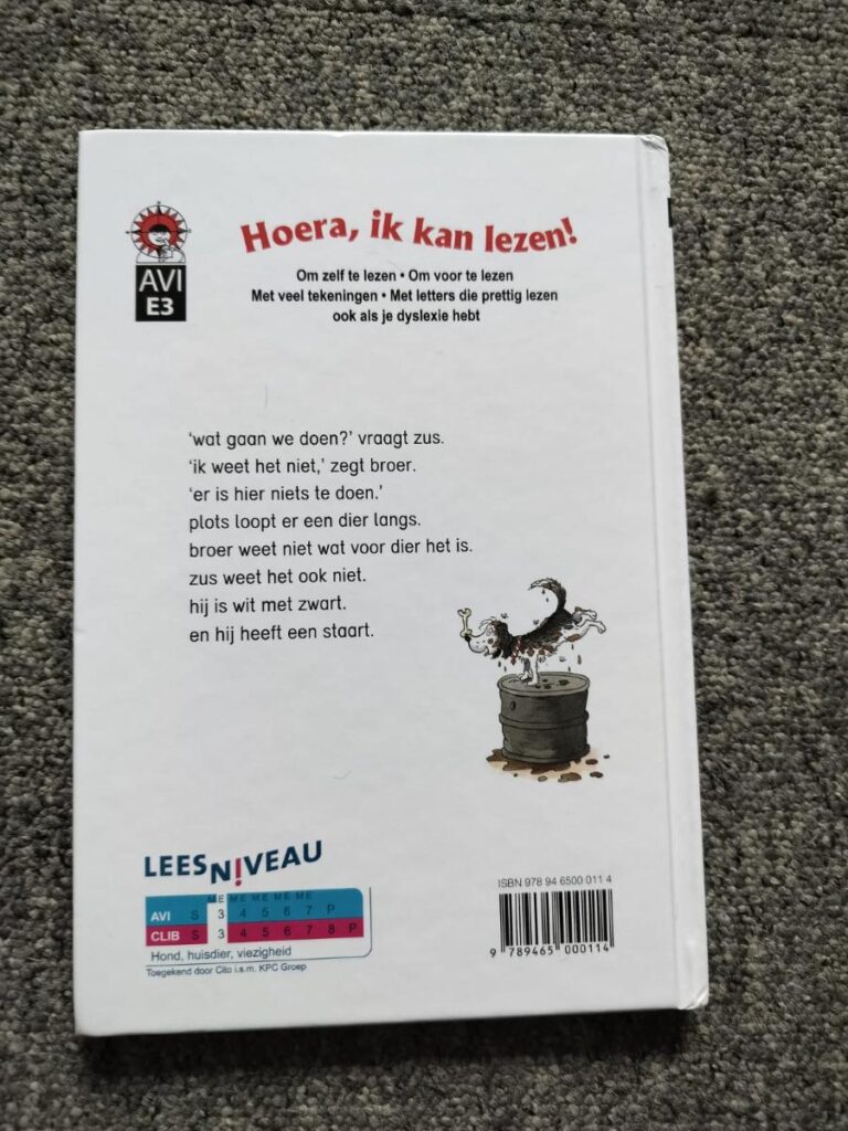 Wat een heerlijk boekje is De Smoezels en de vieze hond. Fijn dat de AVI boekjes niet alleen om technisch lezen draaien, maar dat het verhaal steeds belangrijker gaat worden. Ik vond het boekje misschien wel wat aan de makkelijke kant voor E3 wegens de eenlettergrepige woorden. Het lettertype dat gebruikt is, is speciaal gemaakt voor mensen die moeite hebben met lezen. Dat is voor beginnende lezers ook fijn als extra ondersteuning.