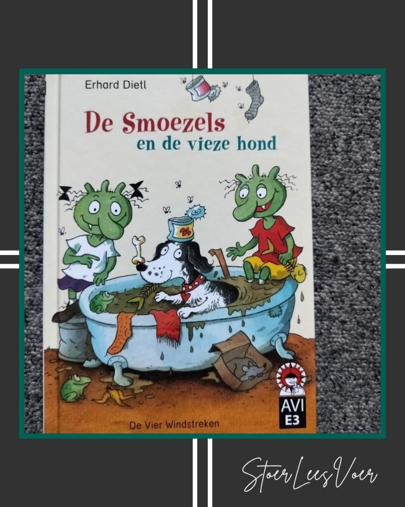 Ik ben groot fan van De Smoezels, maar ik heb tot nu toe vooral de prentenboeken gelezen. Vooral De Smoezels gaan naar school doet het altijd goed op de eerste schooldag in groep 3. De kinderen zijn dan vaak in shock dat de juf zo’n vies boek voorleest. Dat vinden ze heel erg grappig. Ik geniet er ook elke keer weer van om dit voor te lezen. Nu zag ik dat er ook AVI boekjes en voorleesverhalen zijn. De Smoezels en de vieze hond moest ik natuurlijk ook meteen hebben.