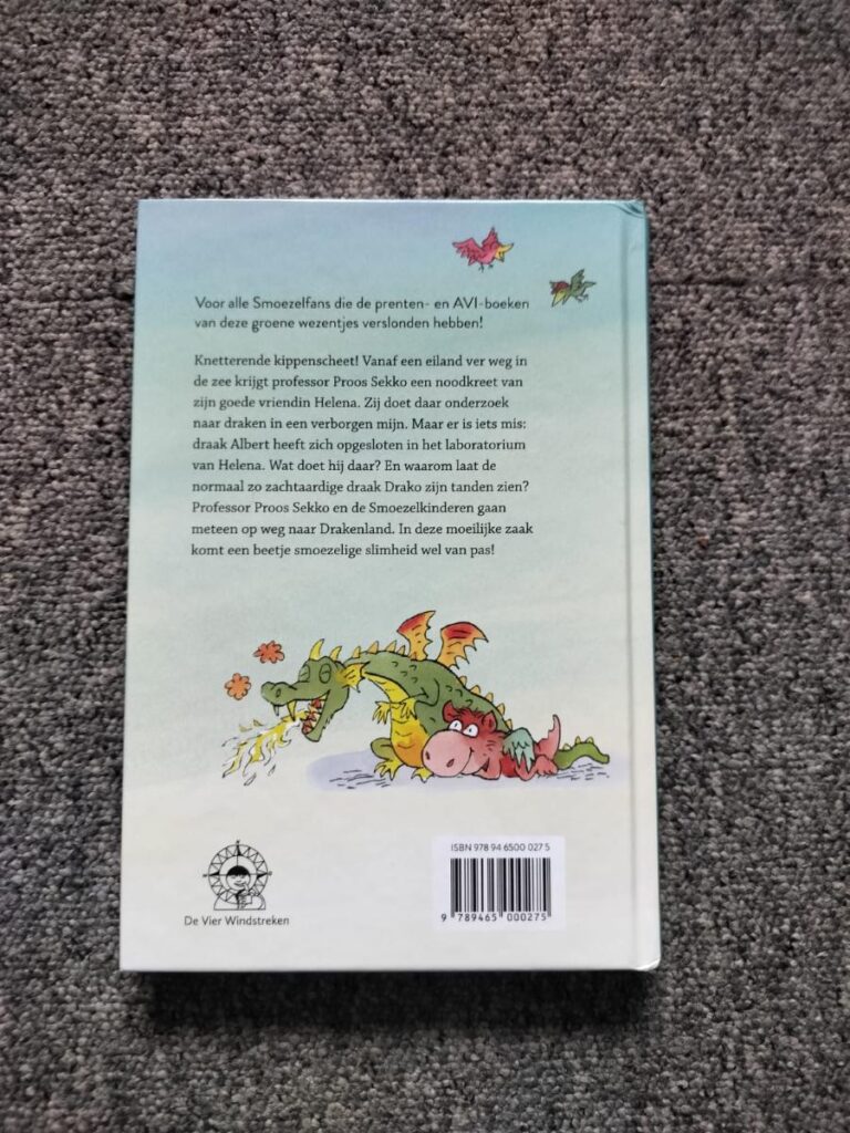 Knetterende kippenscheet! Vanaf een eiland ver weg in de zee krijgt professor Proos Sekko een noodkreet van zijn goede vriendin Helena. Zij doet daar onderzoek naar draken in een verborgen mijn. Maar er is iets mis: draak Albert heeft zich opgesloten in het laboratorium van Helena. Wat doet hij daar? En waarom laat de normaal zo zachtaardige draak Drako zijn tanden zien? Professor Proos Sekko en de Smoezelkinderen gaan meteen op weg naar Drakenland. In deze moeilijke zaak komt een beetje smoezelige slimheid wel van pas!