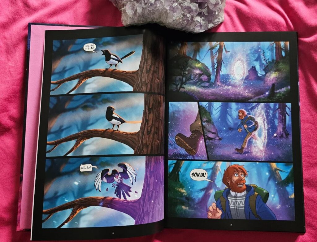 Ik snap heel goed waarom kinderen uit mijn middenbouw deze magische serie Noorderlicht heel leuk vinden. De graphics zijn heel anders dan bij andere graphic novels. Deze zijn gedrukt op een zwarte achtergrond met prachtige pentekeningen die variërend van donker tot helder zijn ingekleurd. Veel noorderlichtkleurgebruik en natuurtonen.