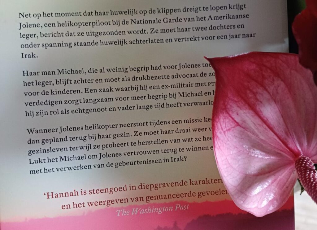 De passages die over de oorlog in Irak gaan zijn aangrijpend en realistisch geschreven. Hannah heeft duidelijk research gedaan voor het verhaal van ‘De weg terug naar huis’. Het leven van militairen is buiten haar boekje, maar aan de authenticiteit van de gebeurtenissen kun je haar inleving terugzien. Tegelijkertijd blijven de persoonlijke verhaallijnen centraal staan. Dit zorgt voor een mooie balans tussen dat wat er gebeurt op het grote wereldtoneel, en het gezinsleven.
