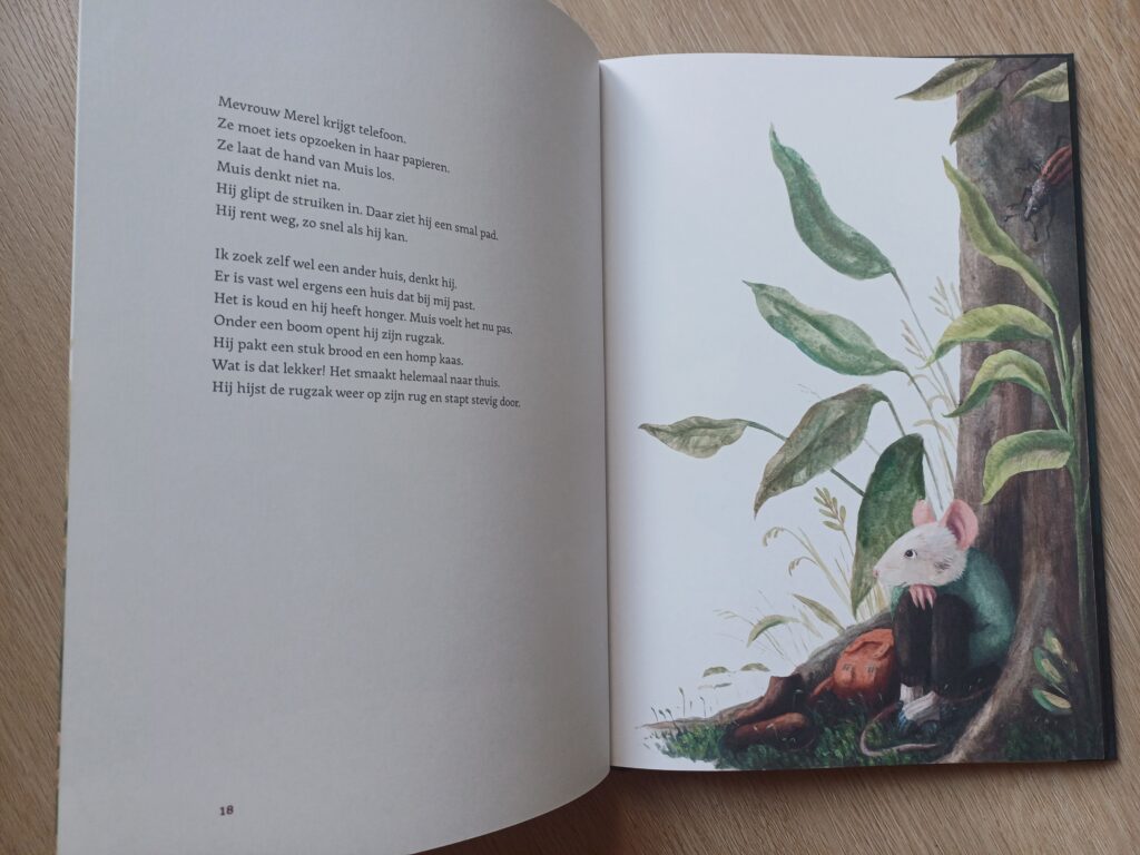 Er zit namelijk een donkere kant aan het verhaal. Het weggehaald worden bij je familie. Ondanks dat je weet dat het goed is (verstandelijk) is dat altijd een ingrijpende gebeurtenis (gevoel). Dat is ook wat muis in Een thuis voor muis meemaakt. Uiteindelijk, na het boeken van een aantal verschillende dieren die totaal niet bij muis passen, vind hij een plek waar hij kan opgroeien en wonen. Waar hij zich veilig kan voelen. Waar hij zichzelf mag zijn. Waarbij mevrouw Merel ook toestemming geeft dat hij daar mag wonen. Het komt goed. Het verhaal loopt goed af. Maar er gaan wel een aantal situaties aan vooraf. Wees je daar bewust van. Zodat je kunt uitleggen, meelezen of even kunt wachten om het verhaal op een later moment te lezen.