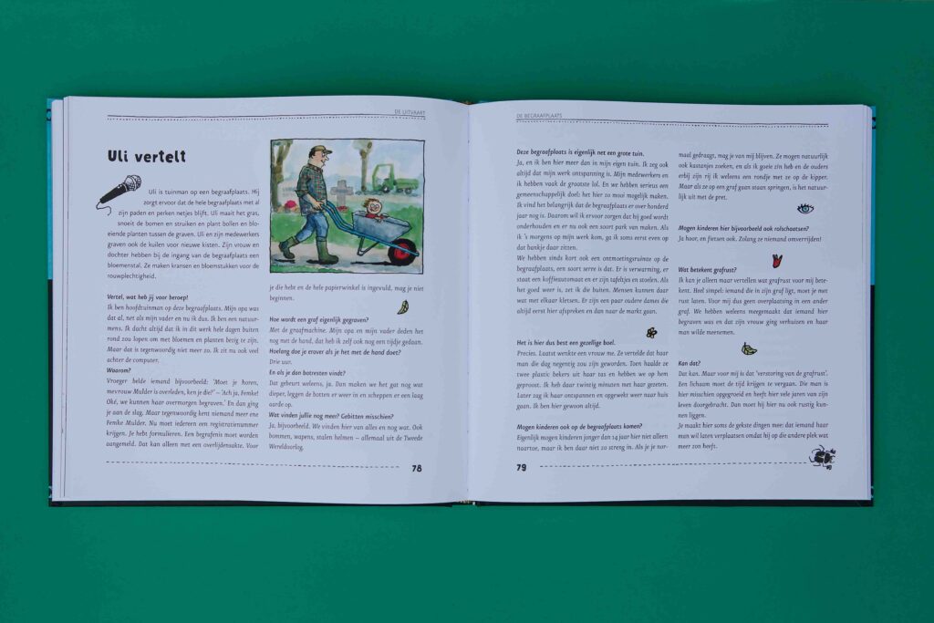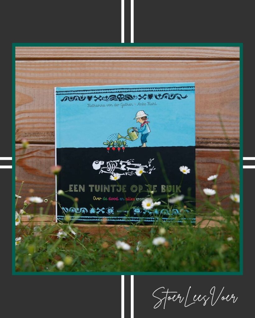 Een tuintje op je buik kun je gebruiken als een naslagwerk om erbij te pakken en de vragen van kinderen, of jezelf, te beantwoorden. Het boek is opgebouwd uit een aantal ‘blokken’. Deze zijn weer onderverdeeld in hoofdstukken. Ik denk dat je met een gerichte vraag dus best goed kunt inschatten waar deze beantwoord zal worden. Zelf las ik Een tuintje op je buik van voor naar achter door. De opbouw zit gelukkig ook logisch in elkaar. Toch vond ik het als volwassene soms fijn het boek weg te leggen en iets anders te doen. Ook al weten we dat we allemaal doodgaan, 150 pagina’s erover lezen grijpt ook mij nog altijd aan.