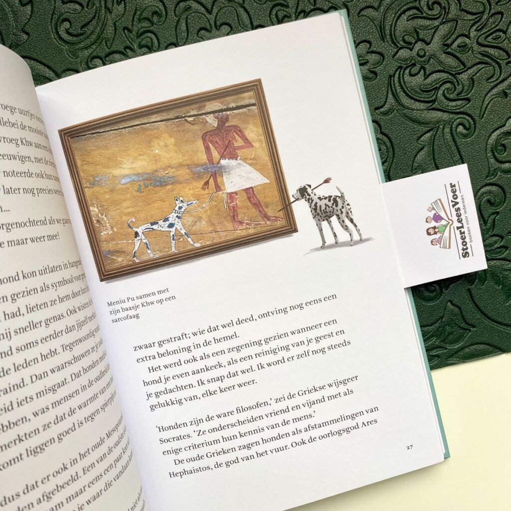 Ook het stuk over Robot zijn vondst en Cro-Magnon is geweldig historisch verhalend. Mijn dochter gaat helemaal aan met deze informatie en ik weet dat dit verhaal meteen opgeslagen wordt. Zoals ik zei wilde ik dit boek echt niet aan haar afstaan voordat ik het uit had, maar ik was zo aan het genieten dat ik dat met haar wilde delen. Lekker tegen me aan ben ik gaan voorlezen. En ook voor dat leent Honden in het museum zich perfect. De voorleescadans waar ik in kom is heerlijk relaxed en fijn.