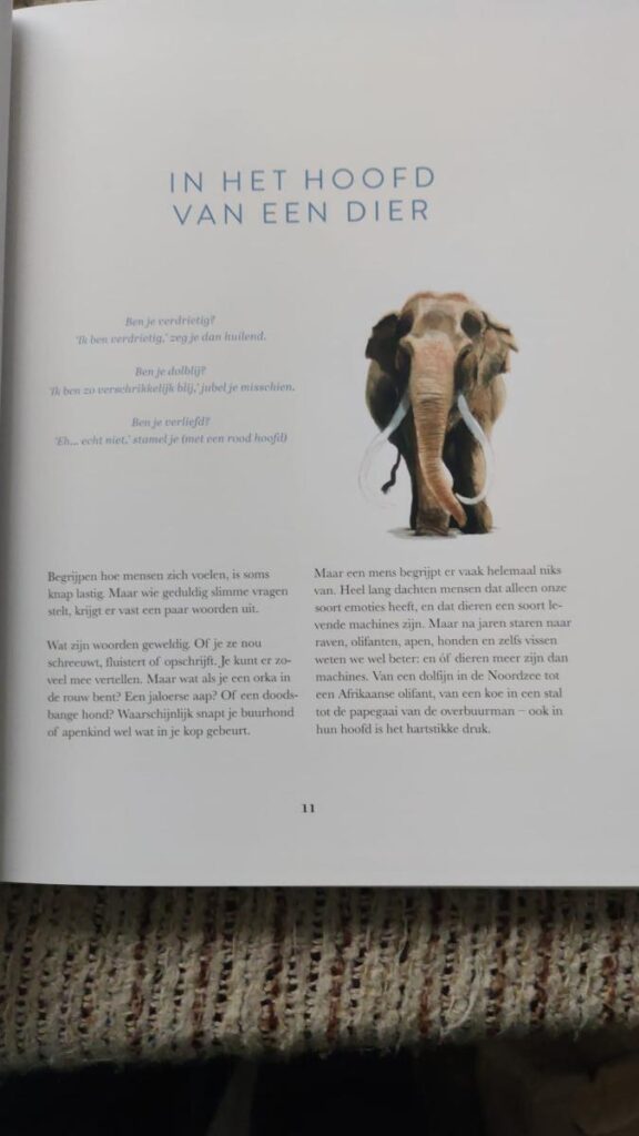Het boek is een ode aan de dieren. De schrijfster laat heel duidelijk zien waarin dieren overeenkomen met de mens en waarin niet. Ze haalt allerlei onderzoeken aan en ook is er op haar website aanvullend beeldmateriaal te vinden, passend bij de onderwerpen. Dit staat altijd aangegeven door middel van een filmcameraatje. Ik vind dit zeker van toegevoegde waarde om het te lezen en daarna de filmpjes te bekijken.