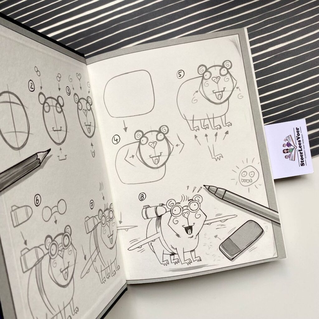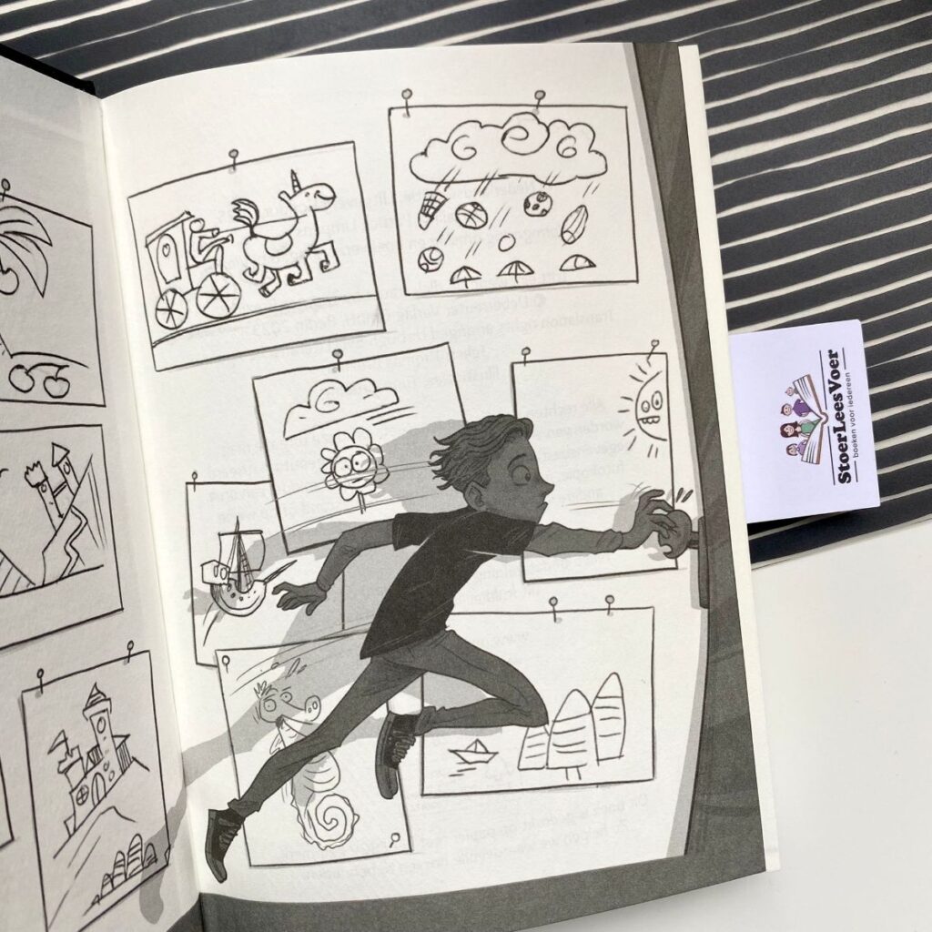 De vormgeving is heel leuk van Kom binnen als je durft. Ik neig meer naar een goedgevuld jeugdboek qua illustraties. Het verhaal is wel leidend en doorlopend. Het omdraaien is ook niet verwarrend. Het staat duidelijk in het verhaal wanneer je het boek moet omdraaien en naar welke pagina je moet gaan.