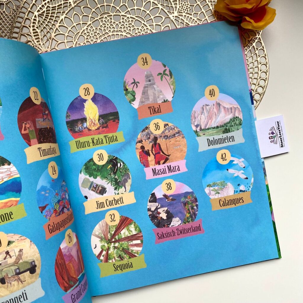 Kijk vooral wat bij jouw doelgroep of kind past. Boven alles is Op reis door het paradijs een prachtig weetjesboek met prenten die je meeneemt naar toffe locaties. Ook voor volwassenen is dit een boeiend boek. Ik hou mijn ogen open voor meer boeken uit deze serie van Mia Cassany want we genieten hier allemaal thuis van. Mijn 6-jarige dochter door alle mooie kleurrijke beelden. Mijn oudste dochter van 11 vindt de informatie boeiend en ik krijg zin om te reizen ervan.