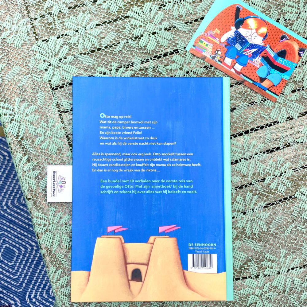 Otto mag mee op reis! Samen met zijn mama, papa, broer en zus en zijn beste vriend Felix gaan ze met een bomvolle camper naar zee. Het wordt een drukke, maar geweldige vakantie, waarin hij snorkelt tussen een reusachtige school vissen en ontdekt wat calamares is. En wat is de wraak van de inktvis? Elke avond mag hij tekenen en schrijven in zijn ‘snoetboek’. Zo zet hij alles op een rijtje en raakt zijn hoofd weer leeg. Hij leert ook dat iedereen wel eens last kan hebben van heimwee, zélfs mama…