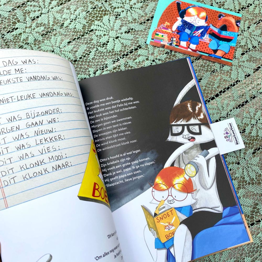 Twee belangrijke thema’s in Otto gaat op reis zijn wel hooggevoeligheid (hoogsensitief) en vakantie! Een combinatie waar menig gevoelig kind mee te maken krijgt. Want vakantie is leuk, plezier, avontuur en genieten… maar tegelijk ook spannend, verandering en nieuw. Hoe kan dat samengaan? Nou, vaak vindt elk gezin wel een eigen manier. Maar erover lezen met een aandoenlijk karakter is toch wel extra fijn. De gevoelige Otto heeft bijvoorbeeld een snoetboek bij de hand waarin hij schrijft en tekent over alles wat hij beleeft en voelt.