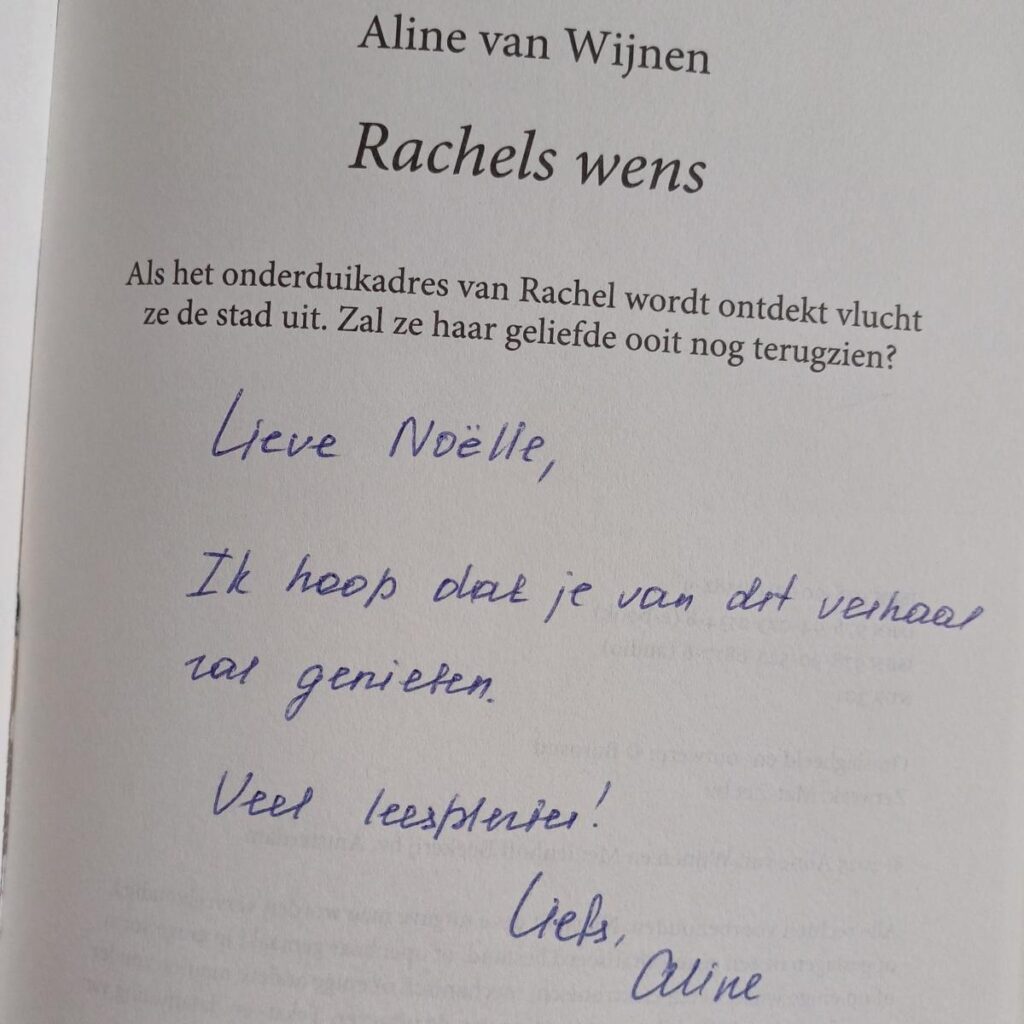 Na haar succesvolle debuut, en andere historische getinte werken, zoals bijvoorbeeld mijn andere favoriet Het geheime kistje van Elle (Bol), is deze roman ‘Rachels wens’ wederom een goede en indrukwekkende combinatie van verlies, hoop, herinneringen en liefde. Aline van Wijnen heeft weer twee tijdslijnen tot een mooi geheel weten te combineren. Het is de nieuwsgierigheid in het heden die de wens uit het verleden levend weet te houden.