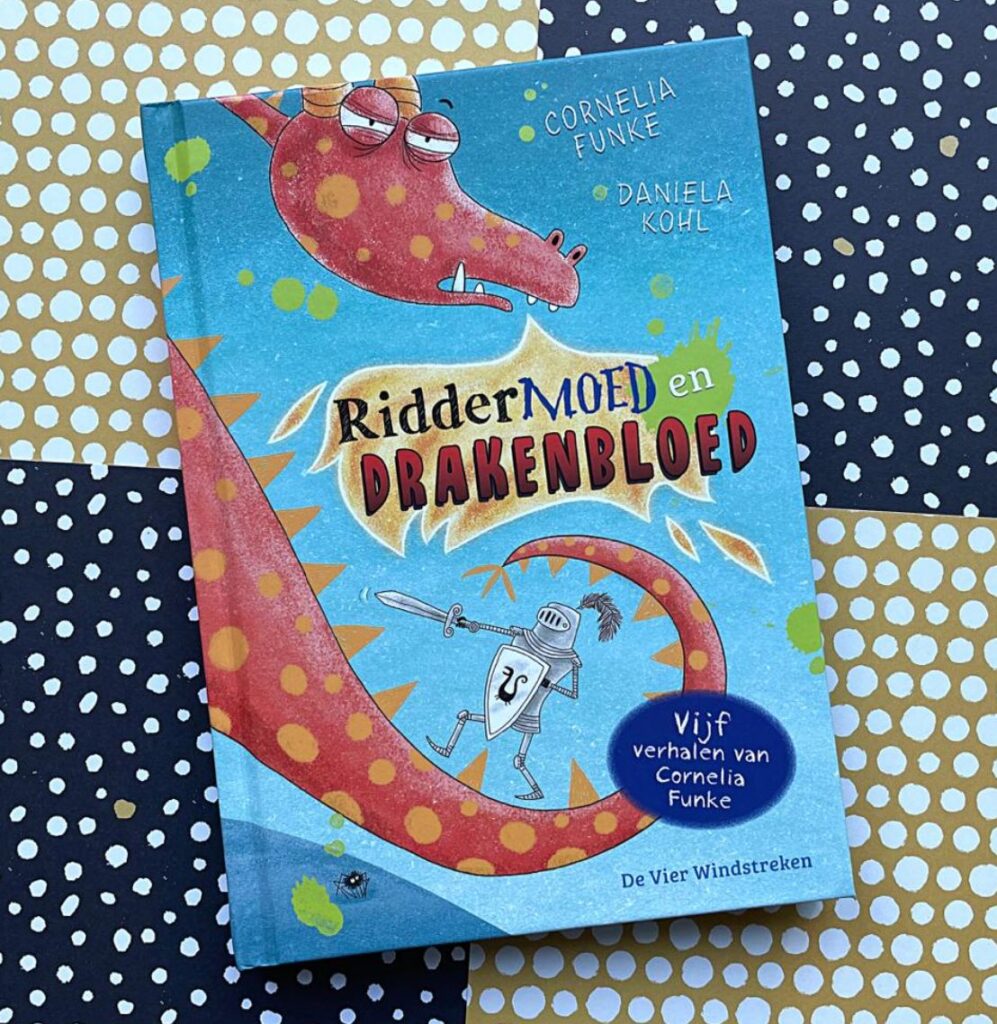 Riddermoed en drakenbloed is juist heel modern. Vrouwelijke ridders en prinsessen die niet meer als prijs in het vooruitzicht gesteld willen worden door hun vader. Geen reus, maar een reuzin. En die reuzin spaart knappe prinsen, die ze in haar handtasje meeneemt en in een gigantisch poppenhuis zet. Heel leuk en knap bedacht door Cornelia Funke, de schrijfster van dit boek. Die naam kwam mij bekend voor, en na even zoeken op Google weet ik waarvan. Zij heeft namelijk ook de serie ‘De wilde kippenclub’ geschreven, een boekenserie die bij tieners wellicht bekend is (er zijn ook films van zijn verschenen).