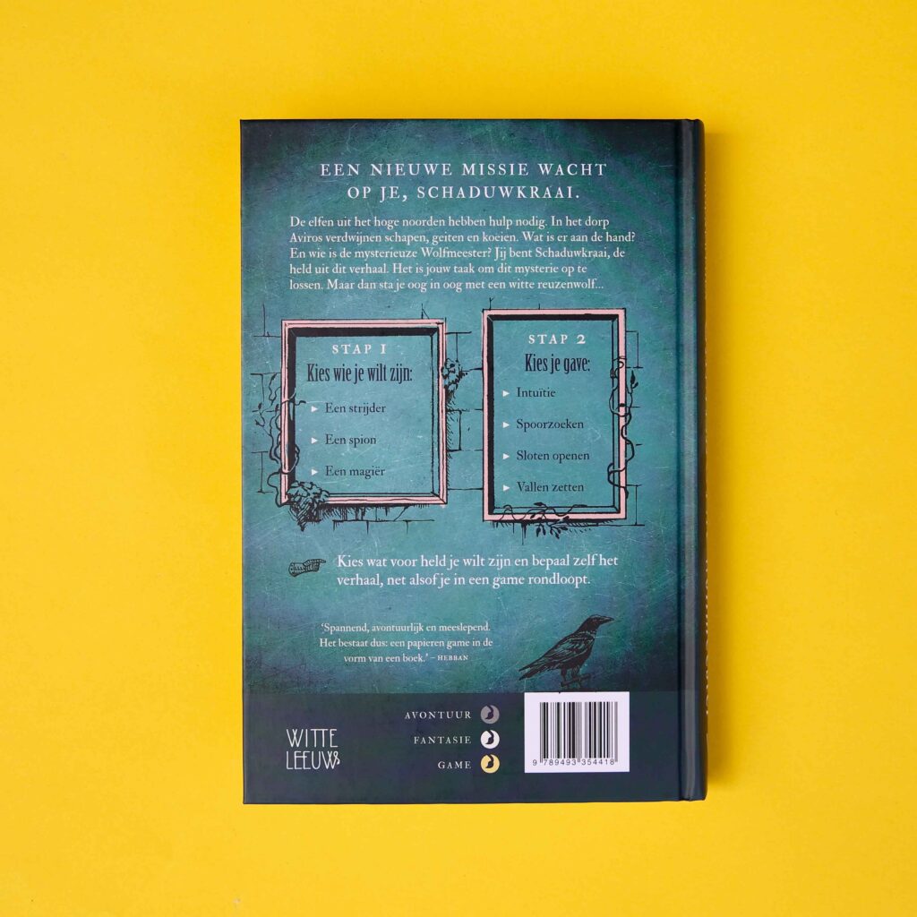 De elfen uit het hoge noorden hebben hulp nodig. In het dop Aviros verdwijnen schapen, geiten en koeien. Wat is er aan de hand? En wie is de mysterieuze Wolfmeester? Jij bent Schaduwkraai, de held uit dit verhaal. Het is jouw taak om dit mysterie op te lossen. Maar dan sta je ook in oog met een witte reuzenwolf…