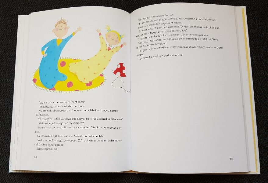 Wat ook mooi is dat Job een baby broertje krijgt en dat je ook ziet wat dit met Job en Keetje doet. Zo zitten ze ook met kussens onder hun kleding op de buik, willen ze ook in een babyslaapzak zitten. Dochterlief is in elk geval enthousiast over de verhalen! En deze mama ook.