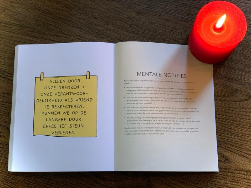 Tegelijk zijn we bang om iets verkeerds te zeggen. Door het lezen van 5 minuten therapie heb ik meer geleerd over hoe gezonde steun eruit ziet en dat het oké is om daarbij ook aan jezelf te denken. De vele vragen in het boek helpen mij reflecteren op hoe ik het doe en hoe ik nog kan groeien. En wat voelt het dan fantastisch als een dierbare tegen mij zegt: “Sanne, bedankt voor vandaag. Bij jou kan ik mezelf zijn”.