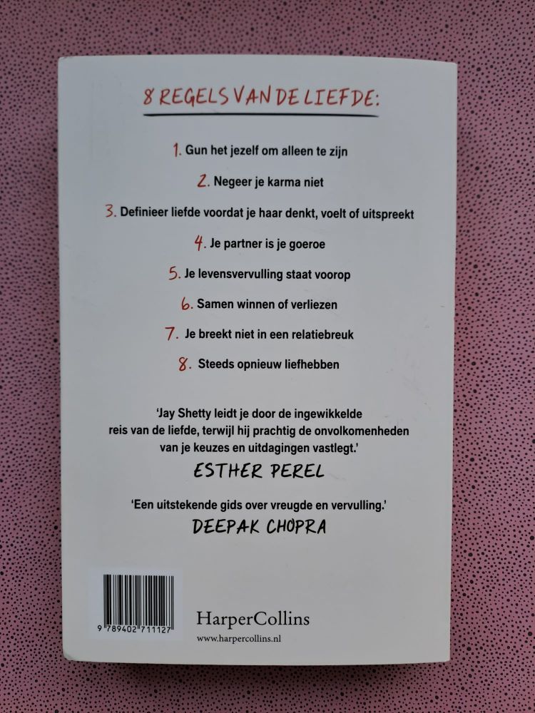 ‘8 regels van de liefde’ is een mooi boek wat gaat over de liefde vinden, vasthouden en durven los te laten. De auteur van ‘Denk als een monnik (Bol)’, Jay Shetty, schreef dit boek. Engelsman Shetty heeft een bijzondere achtergrond. Hij studeerde bedrijfskunde, kwam in aanraking met een monnik die een presentatie gaf tijdens zijn opleiding. Vervolgens heeft Shetty drie jaar als monnik geleefd bij/volgens de Veda, een oud hindoeïstische religie. Om vervolgens, als ik heel wat stappen over sla, wereldberoemd te worden met ‘Denk als een monnik’, en inmiddels een getrouwd man.