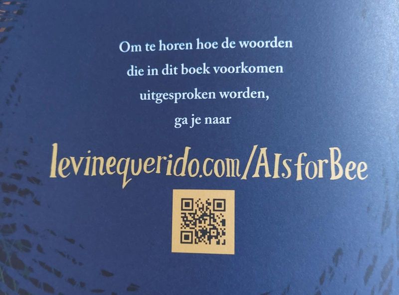 En dan komt achterin het boek een qr code waarmee ik kan luisteren hoe ik het moet uitspreken. Kijk eerst stuntelen, maar de redding is nabij!