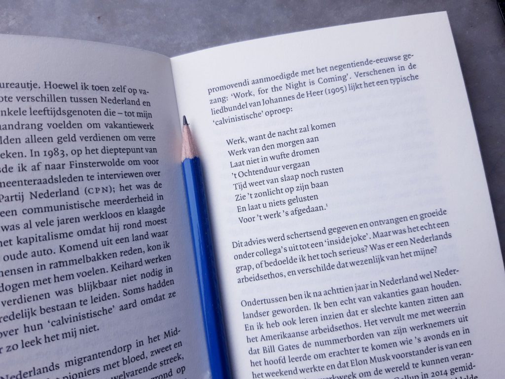 In het laatste hoofdstuk geeft de auteur zijn indruk van het Nederlandse arbeidsethos anno nu. Over hoe dat steeds meer in evenwicht is. We zijn gelukkiger met ons werk, productiever en beter in balans. Maar er zijn natuurlijk vele verschillen. Werknemers met flexcontracten, statushouders en zzp’ers ervaren heel wat minder zekerheid. Ook is er nog veel te verbeteren op het gebied van werksfeer en prestatiedruk.