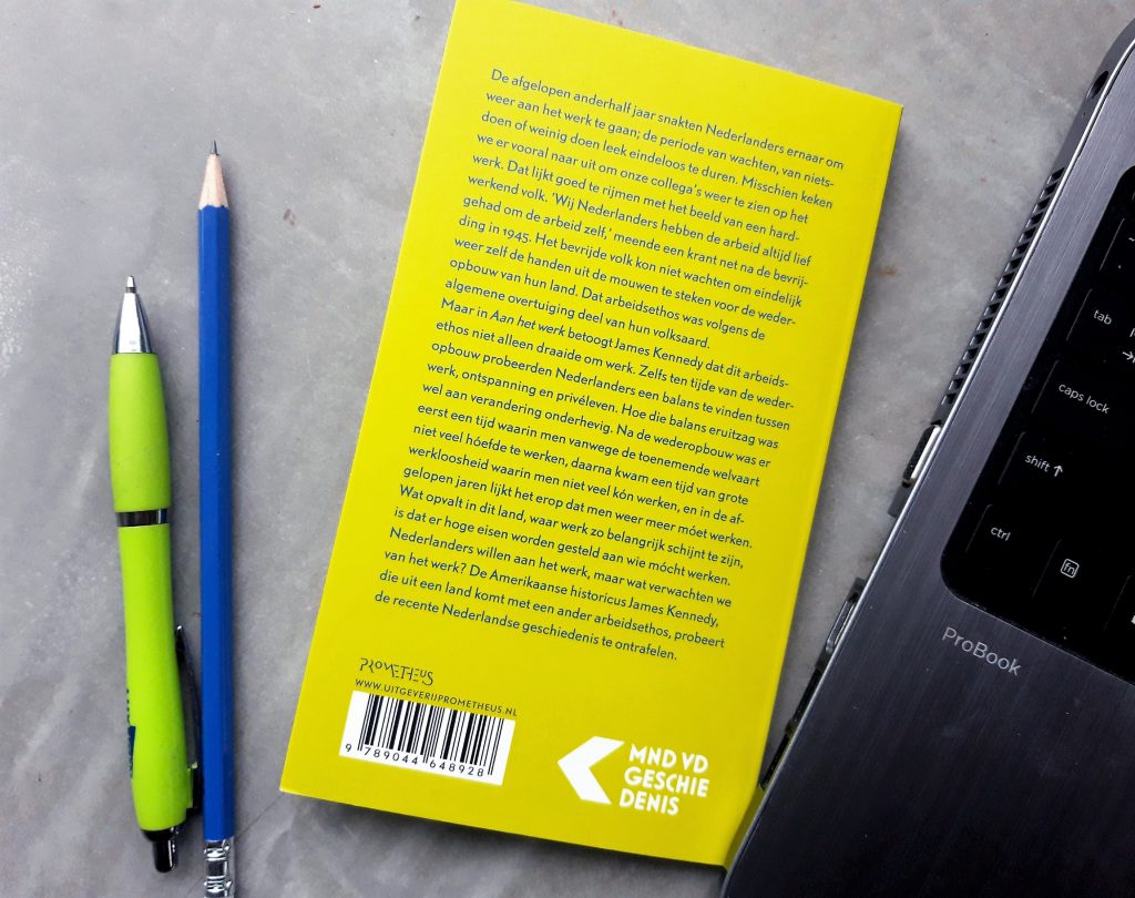 In het essay Aan het werk wordt vanuit historisch perspectief gekeken naar het Nederlandse arbeidsethos. Bijvoorbeeld hoe de Tweede Wereldoorlog een rol heeft gespeeld en de wederopbouw daarna. Maar ook het ontstaan van wet- en regelgeving rondom sociale zekerheid. En ook belangrijk zijn de waarden die in de jaren 60 zijn ontstaan op het gebied van zelfontplooiing en keuzerecht. Daaruit is een tendens ontstaan waarbij Nederlanders hun werk wel minder centraal stellen, maar desondanks nog steeds wel heel serieus nemen.