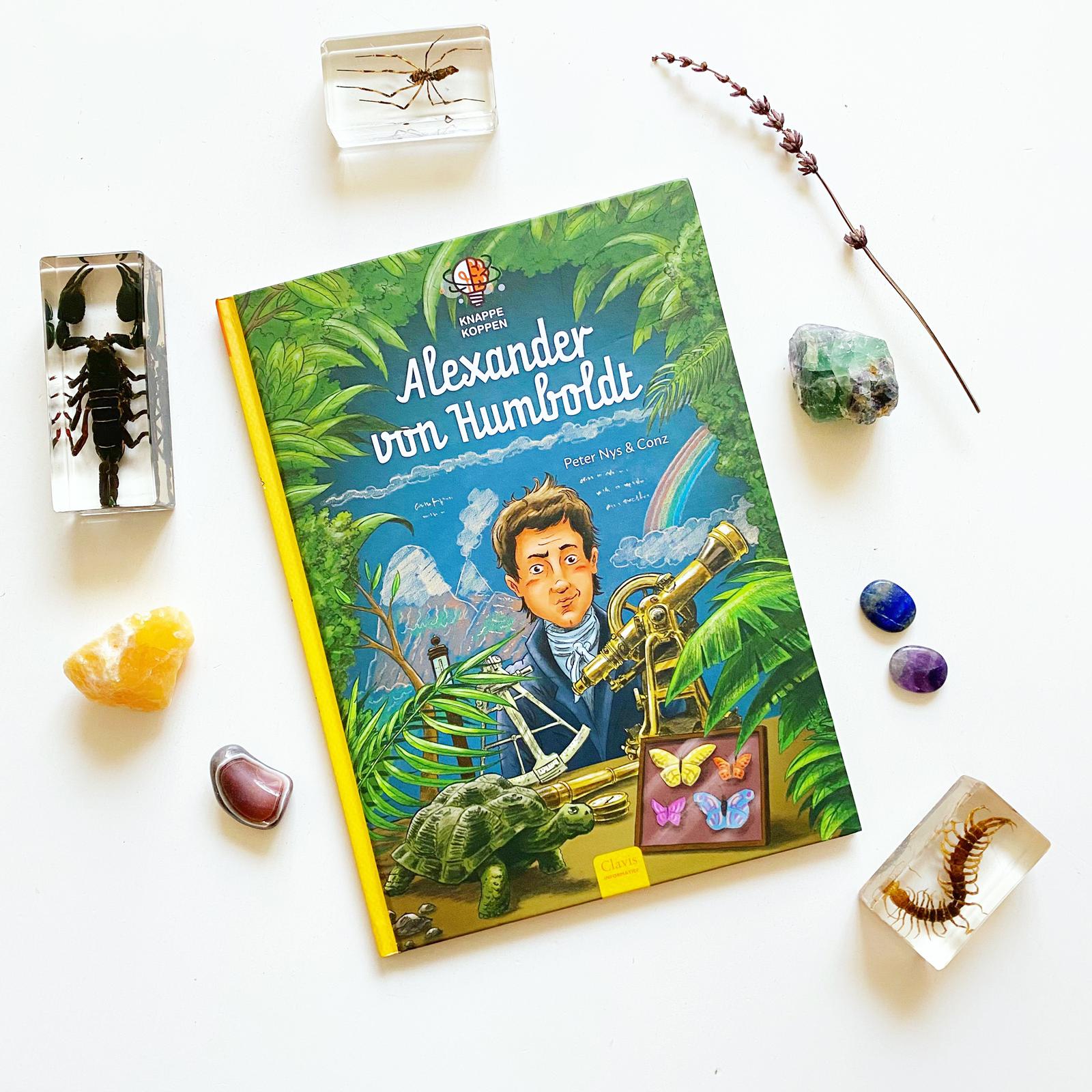 De zakken van de jonge Alexander von Humboldt puilen altijd uit door de stenen, insecten, planten en fossielen die hij op zijn zwerftochten in de bossen vindt. Hij groeit in de tweede helft van de negentiende eeuw op tot een echte avonturier binnen de wetenschap. Maar je mag hem gerust ook een klimaatgenie noemen! Zijn expedities leiden hem over de hele wereld en het avontuur en de wetenschappelijke ontdekkingen zijn nooit veraf. De serie ‘Knappe koppen’ laat jonge kinderen kennismaken met de grootste wetenschappers aller tijden. Dit keer is Alexander von Humboldt, de vader van de klimaatbeweging aan de beurt! Het boek is geschikt voor onderzoekers vanaf ongeveer 9 jaar.