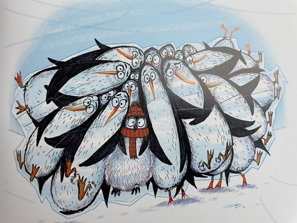 Niets zo gezellig als even heerlijk met zijn allen knuffelen. Maar in ‘Alle pinguïns op een kluitje’ gaat dat even helemaal mis. Want als je met zijn allen tot één grote klont bevriest, heb je wel een probleem…