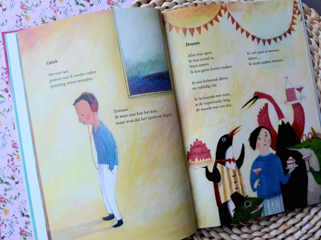 De prachtige illustraties van Janneke Ipenburg geven de gedichten ook een hele mooie extra lading. Het is dromerig en kleurrijk. Maar er is ook een bepaalde kwetsbaarheid door de combinatie van de tekst en de illustraties. Dit komt bijvoorbeeld mooi tot uiting in het gedicht Mezelf, wat lijkt te gaan over de pijn en het verdriet van iemand anders willen overnemen.
