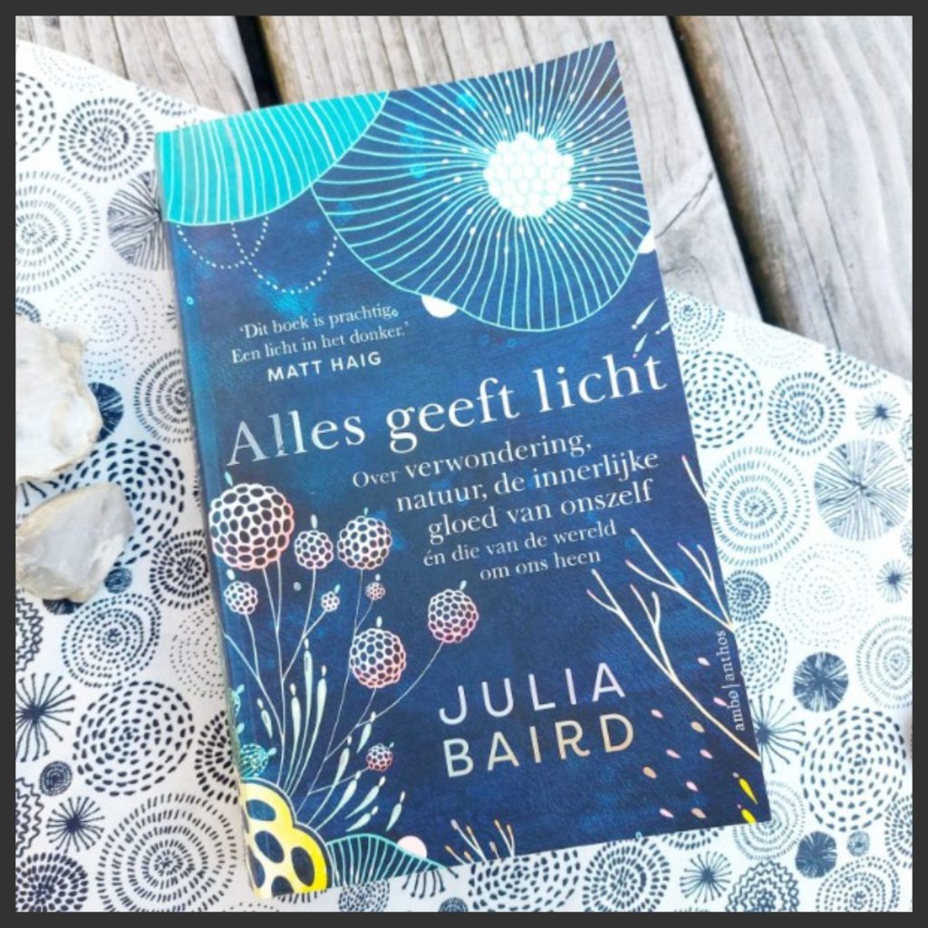 Alles geeft licht is een persoonlijk verhaal van journalist en auteur Julia Baird over de zoektocht naar verwondering, voldoening, geluk en vreugde. Zelfs in de moeilijkste omstandigheden, zoals een ernstige ziekte. Want Julia Baird heeft helaas zelf ondervonden hoe moeilijk het dan is om dan staande te blijven. Naast haar persoonlijke verhaal beschrijft deze bestseller auteur allerlei bijzondere voorbeelden en wetenschappelijke onderzoeken. Waaronder over de kracht van de natuur en het verschijnsel fosforescentie. Alles geeft Licht is eigenlijk de conclusie en samenvatting van deze zoektocht. Zowel wijzelf als de natuur zijn lichtbronnen, en dit helpt bij het overwinnen van tegenspoed. Boeiend en inspirerend leesvoer!