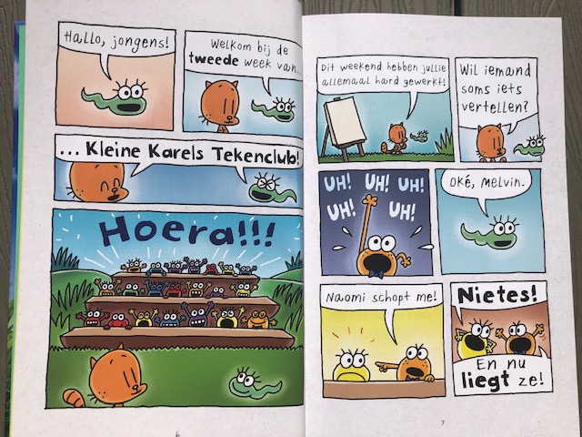 Als kikkers gaan keten. Tja, wat krijg je dan? In ieder geval weer een hilarisch boek van Dav Pilkey. Alweer het tweede deel van Kleine Karel. Oorspronkelijk uit de DogMan Reeks, in een bijrol. Nu schittert dit lieve katje, de gekloonde zoon van de door en door slechte (wat uiteindelijk ook wel weer meevalt) Karel, in een hoofdrol. Kleine Karels tekenclub laat zien dat strips maken niet zo ingewikkeld is. Met een boel creativiteit en doen wat er in je hoofd opkomt kom je een heel eind. Zeker als kleine kikkers gaan keten. En dan vooral Melvin en Naomi.