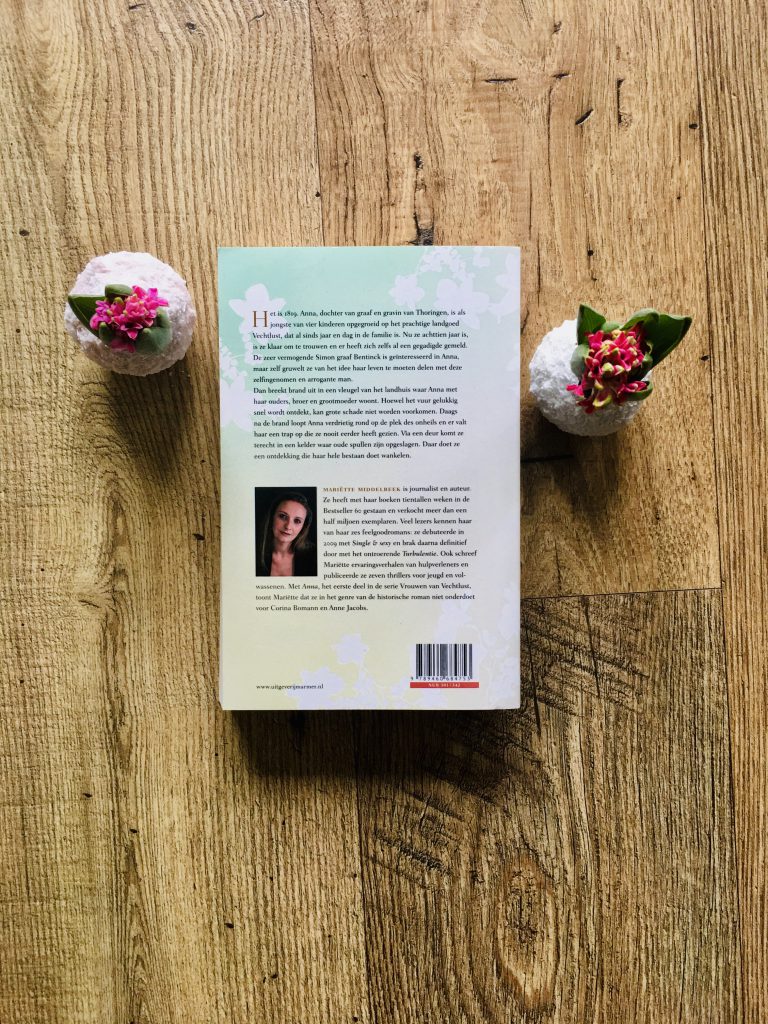 Als je eenmaal bent begonnen, dan wil je eigenlijk niet meer stoppen met Anna. Eerst leer je Anna kennen; wat drijft haar en hoe ziet ze haar toekomst? Het lijkt me vreselijk als je niet zelf je toekomst kunt uitstippelen, dus ik kan me haar opstandigheid en hunkering naar echte liefde helemaal voorstellen. Goed dat auteur Mariette Middelbeek je meeneemt hoe een dag eruit zag als iemand van goede huize. Alle kleine details worden meegenomen. Ik houd hiervan; ik kan me dan beter verplaatsen in de wereld van toen en ook in de sprong terug in de tijd naar 1800 later in het boek. Zelfs zat ik er zo in dat ik heb opgezocht of Villa Vechtlust en de familie Thoringen echt hebben bestaan. Maar nee, ze hebben jammer genoeg echt niet bestaan haha!