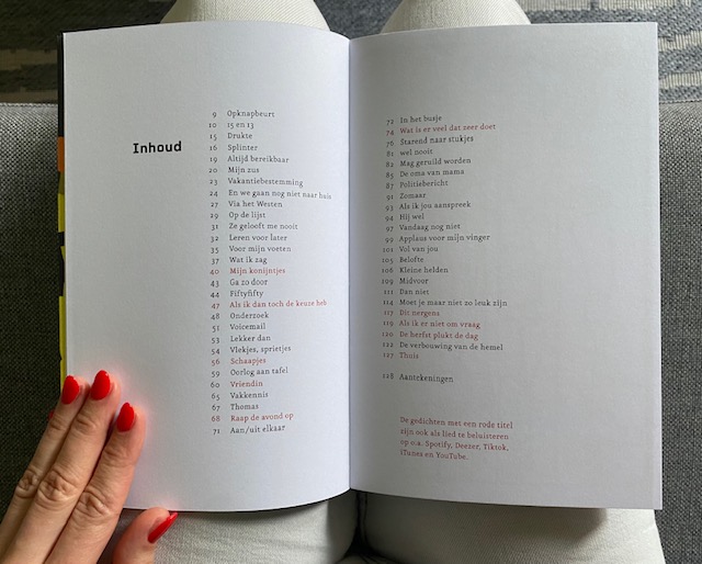 Ieder gedicht of liedje is een leuke combi van tekst, illustratie en op YouTube en Spotify zijn enkele liedjes gezongen met muziek erbij. Een tip voor het boek zou nog zijn om een QR-code toe te voegen met een directe link naar de kanalen. De muziek geeft een beetje een theatergevoel. Als je alleen leest, leg je er weer meer van jezelf in, zoals het leestempo en emoties. Leuk om beide te ervaren. Ik vind het zelf ook fijn om gedichten soms hardop voor te lezen.