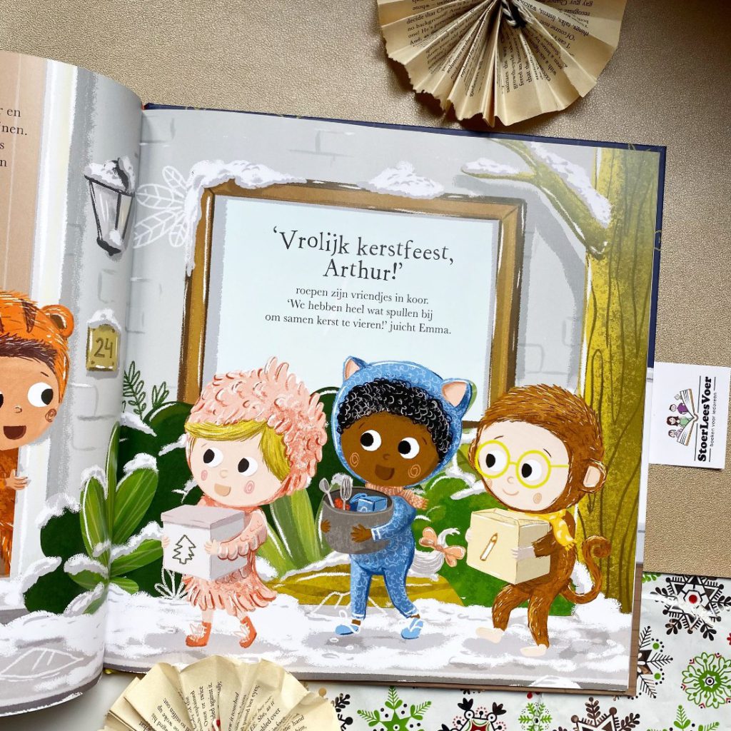 Arthur viert kerst! Maar hoe? Dit prentenboek is het eerste boek met deze kleine vriend in de hoofdrol. Eerder zagen we Emma naar school gaan en Olivia naar het strand. Dit keer stappen we een winters sfeertje in met Arthur. Deze Beestenboel boeken zijn voor wat oudere kindjes. Het is meer verhalend en de pagina’s zijn dun. Uiteraard mogen jongere kinderen ook meegenieten. Maar we weten allemaal dat voor bepaalde doe-grage vingertjes hardkarton boekjes fijner zijn. Je kan zelf prima die keuze maken als ouder, verzorger of professional.