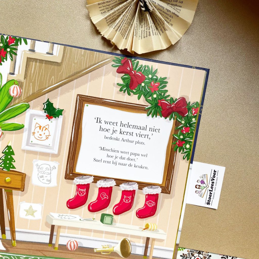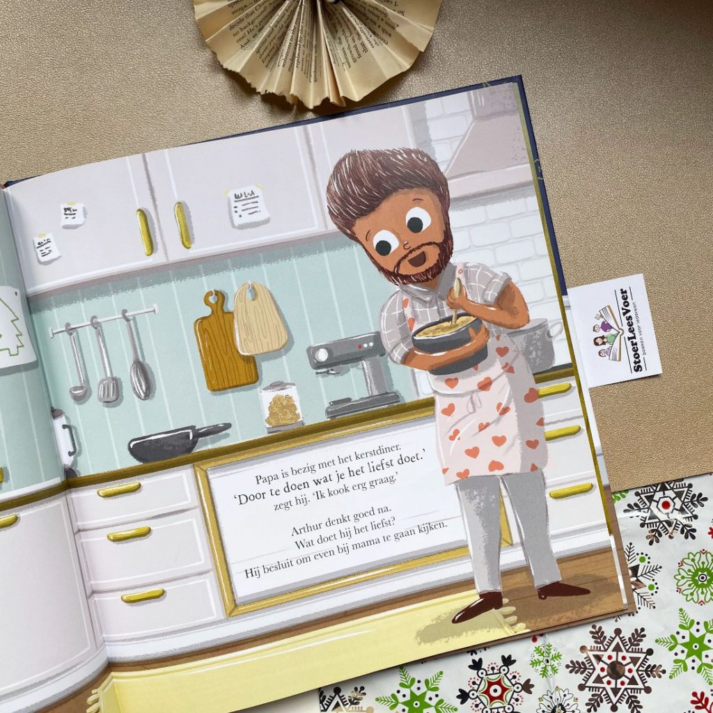 Arthur viert kerst is zowel voor kind als ouder/verzorger herkenbaar. Ik geniet van iets simpels als het rommelige huis. Misschien kan ik beter levendig zeggen. In een huis met kinderen liggen er nou eenmaal meer spullen overal, bewust en onbewust. Federico Van Lunter is zelf een papa, en dat is in dat soort details zeker merkbaar. Ik juich het toe dat er een man/papa in de keuken staat. Wat mij betreft leven we in een wereld waar de keuken voor zowel mannen als vrouwen kan zijn. Een keuken met overal briefjes en tekeningen, wederom herkenbaar.