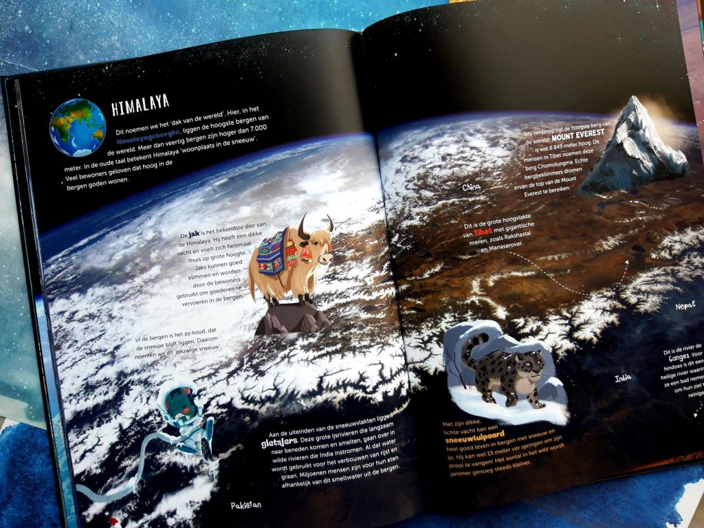 Wat mooi en belangrijk dat deze Atlas van de Aarde er is om kinderen een beetje van dat magische beeld mee te geven. André Kuipers vertelt in zijn voorwoord dat hij uren kon kijken vanuit het ISS naar de aarde. Naar de bergen, bossen, rivieren, zeeën en woestijnen.