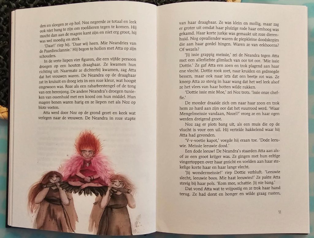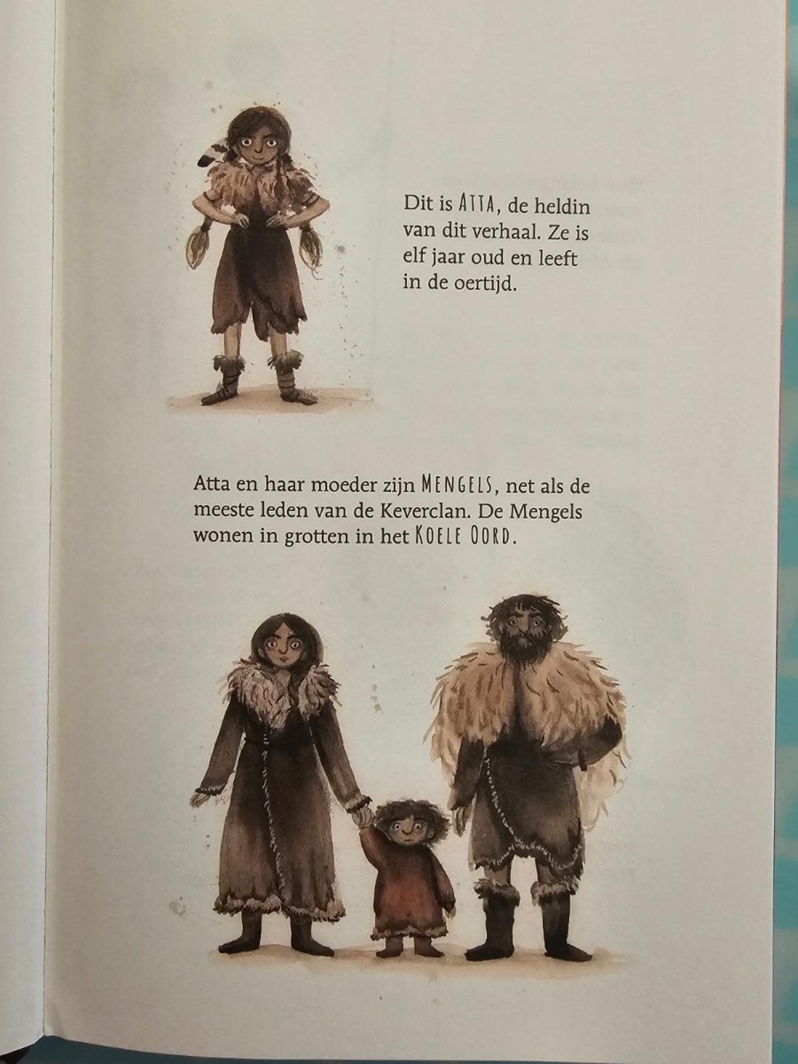 Veel blogteamleden voor mij hebben het al ervaren. Uit je comfortzone treden en een boek lezen die je normaliter niet zou kiezen. Dat heb ik met geschiedenis, ik heb er niet zoveel mee. En ja dat is erg, maar wel eerlijk. Dus toen ik het Atta boek zag in de brochure dacht ik, oké hier wil ik wel eens meer van lezen op een leuke manier. Ook om eens wat andere boeken mee naar school te nemen voor een divers boekenaanbod in de klas. Een verhaal uit de prehistorie, over de Howies en de Neanders en hun Mengelskinderen.