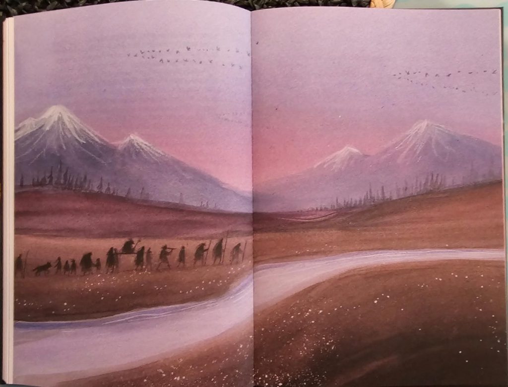 Linde Faas mocht de illustraties maken en die zijn schilderachtig mooi! Linde ken ik al goed door haar eigen prentenboeken De jongen en de walvis en waar is grote broer. Ik heb genoten van haar prachtige illustraties die ook vol humor staan. De prehistorie krijgt een gezicht en een uitzicht die ondersteunend zijn voor de verre reis die Atta maakt.