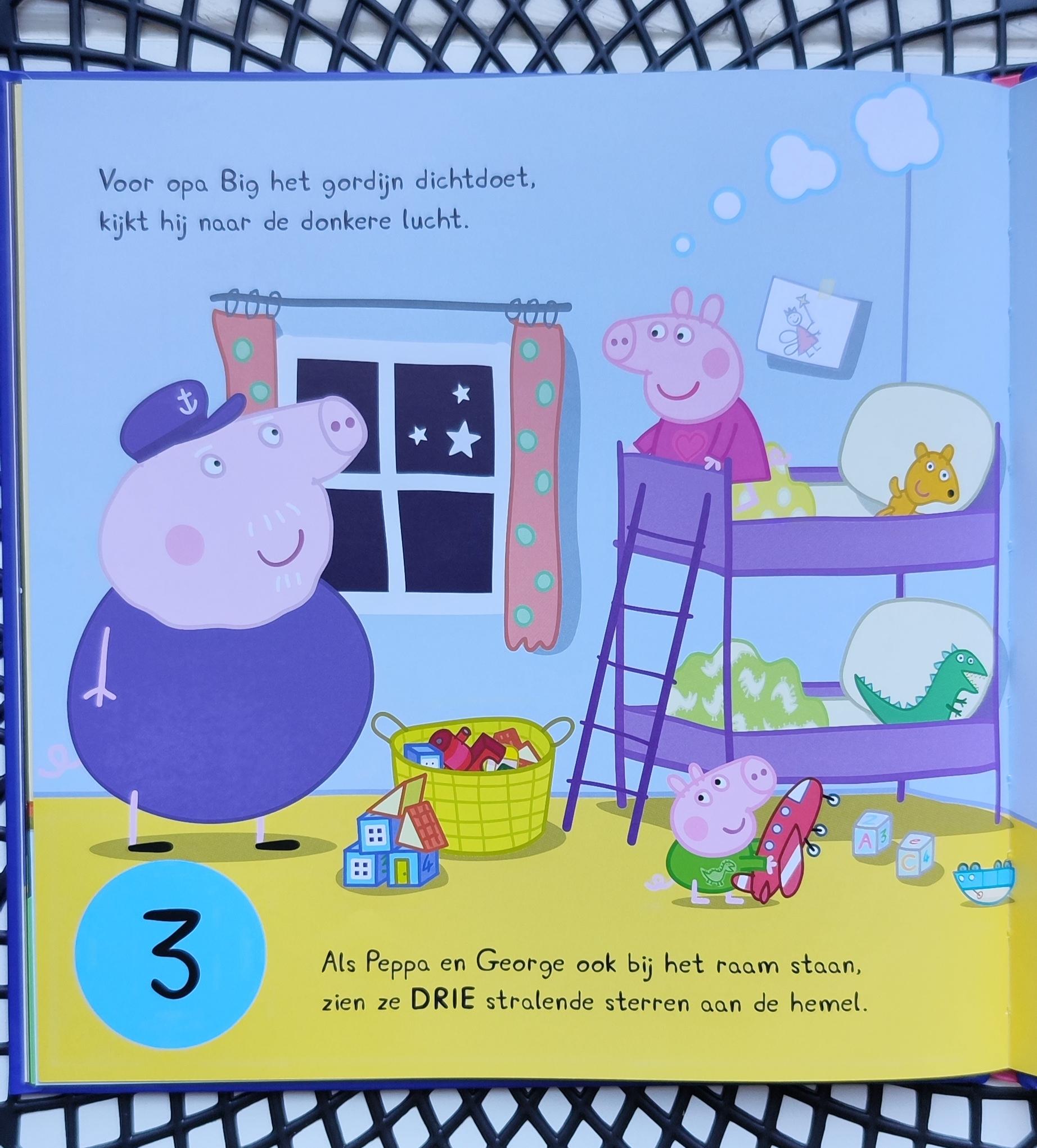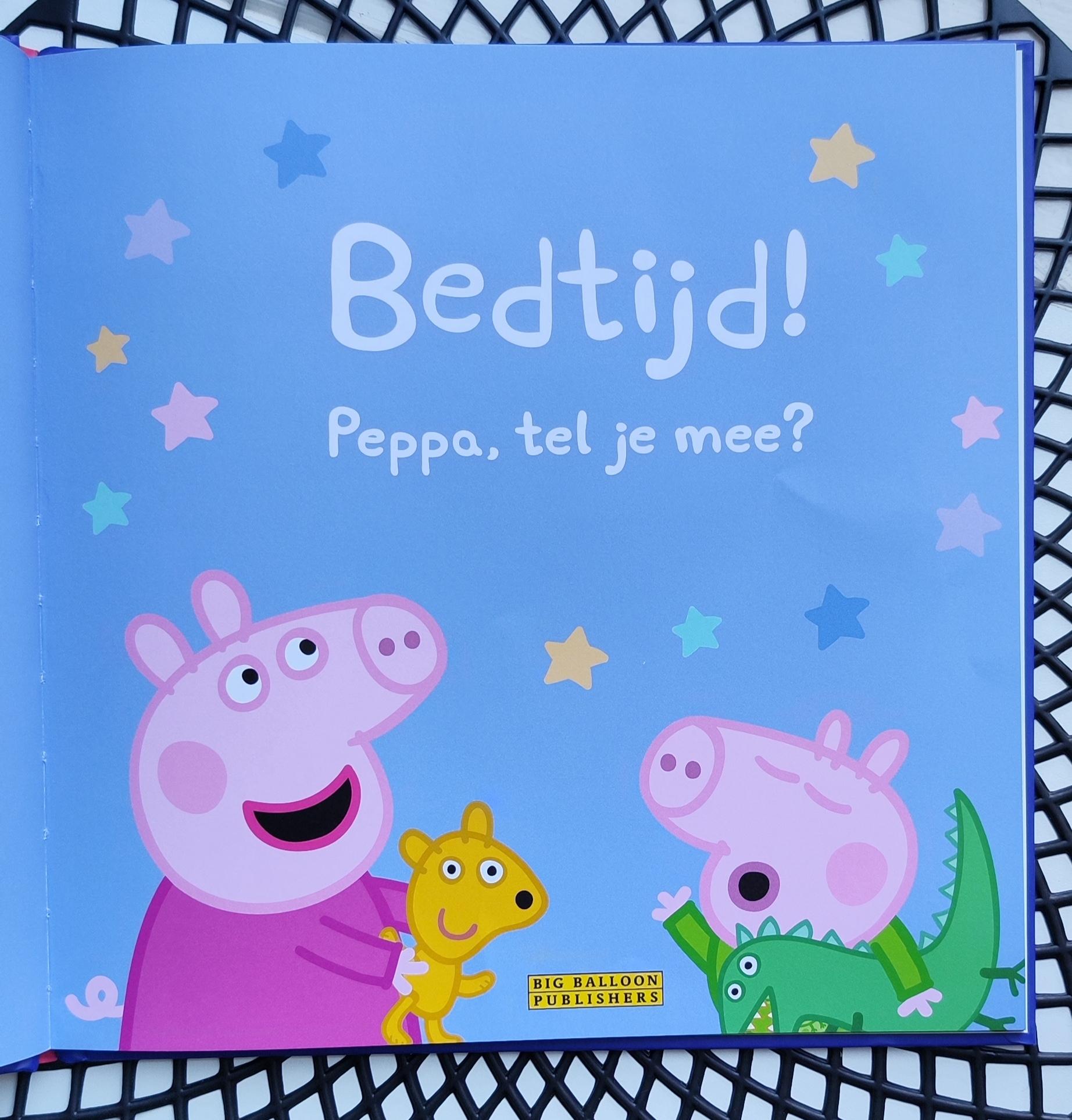Peppa Big, het varkentje dat niet uit mijn leven lijkt te verdwijnen! Begrijp me niet verkeerd, ik vind Peppa Big echt wel leuk. Maar soms denk ik wel eens dat er niet nog meer Peppa dingen kunnen verschijnen. Toch heb ik een zwak voor Peppa boeken, want boeken zijn… boeken. En als ik ergens van houd dan zijn het boeken. Bedtijd! Peppa, tel je mee? voegen we dan ook graag aan onze collectie voorleesboeken voor het slapen gaan toe.