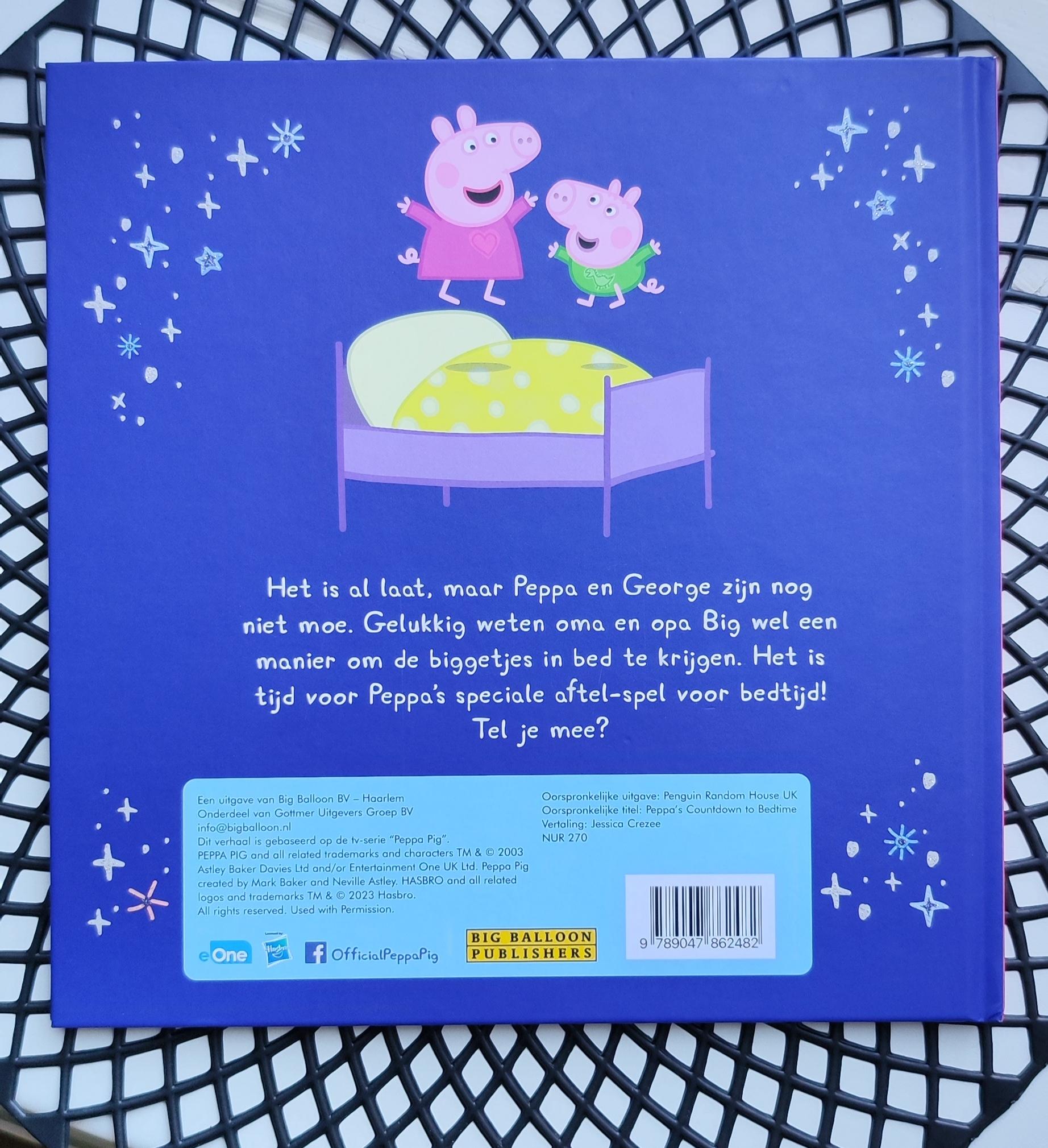 Peppa en George moeten naar bed, maar dat doen ze niet zomaar. Niet voordat ze het aftel-spel hebben gespeeld. Opa en oma doen maar wat graag mee. Samen aftellen tot 1; kan jij dat ook?