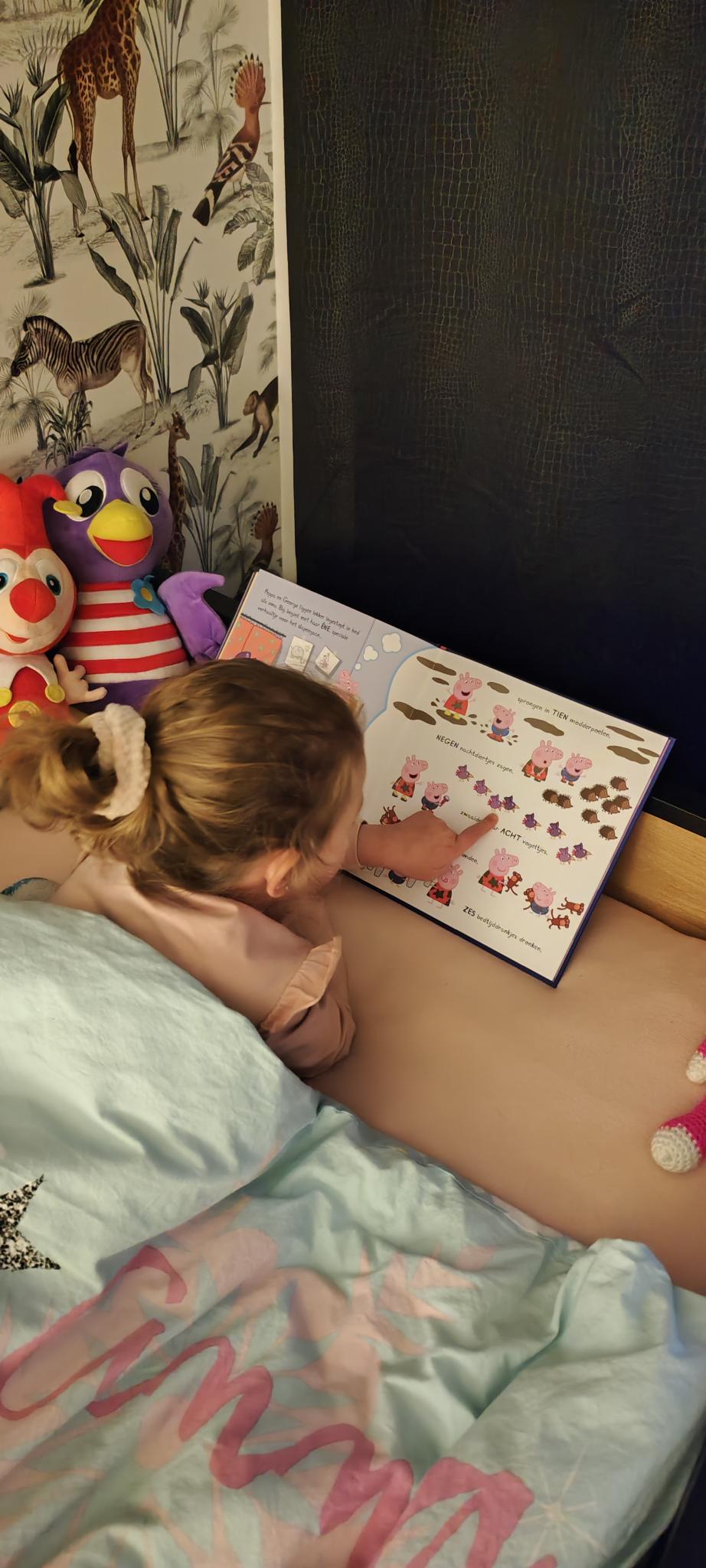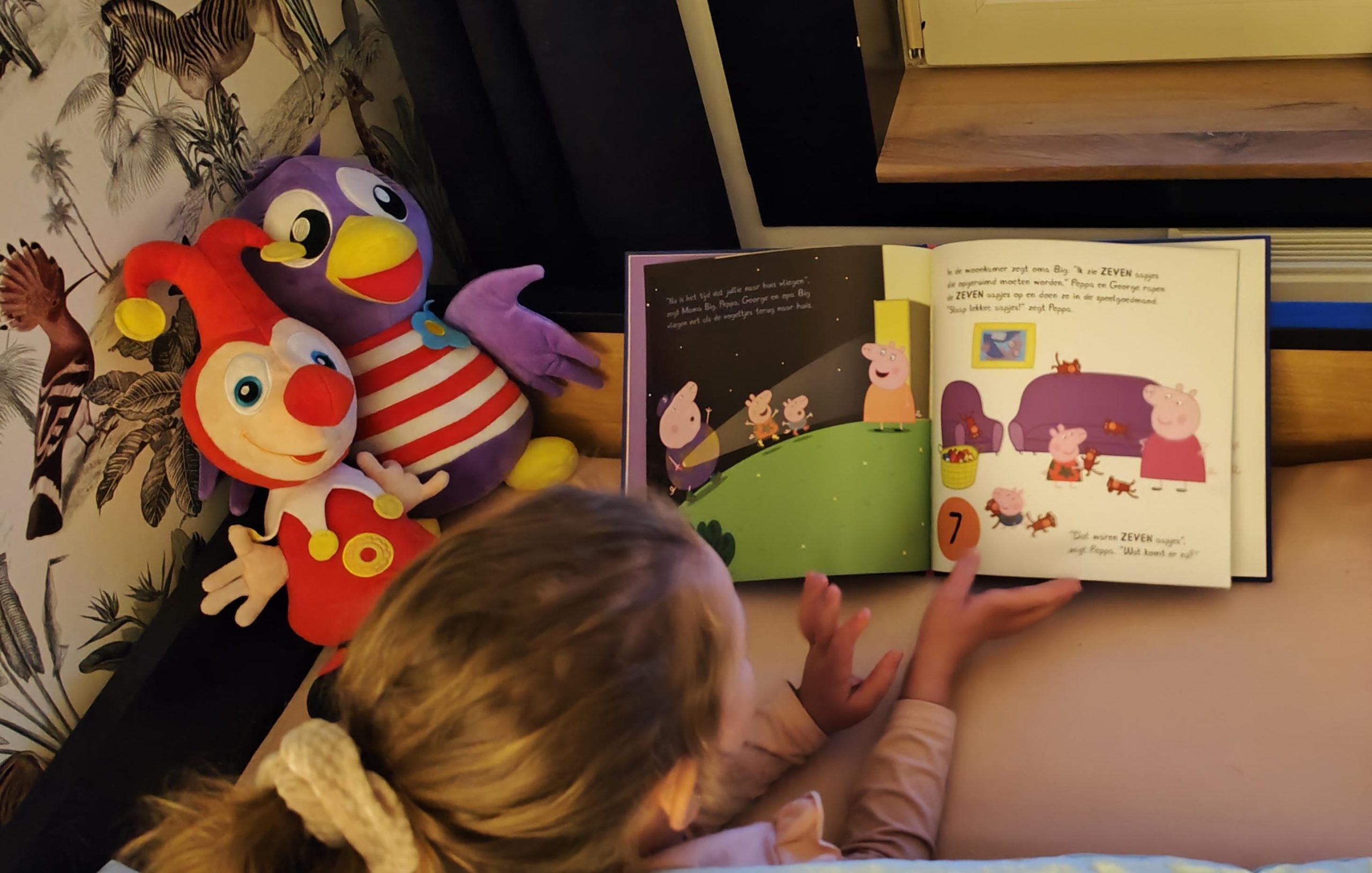 Iedere avond rond 19.00 uur is het toch echt bedtijd hier in huize Kolb. Onze dochter heeft een vast ritueel zoals waarschijnlijk bijna alle kinderen. Plassen, tanden poetsen en dan lekker naar boven. Pyjama aan en dan is het toch echt tijd voor een verhaaltje. Lezen, en in deze fase van haar leven vooral voorlezen, vind ik als ouder onwijs belangrijk. Het pasje van de bibliotheek komt iedere paar weken tevoorschijn en slepen we een stapel van 20 boeken mee naar huis. Voorlezen, daar sluiten we de dag met liefde mee af. En met Bedtijd! Peppa, tel je mee? gaan we dit nog zeker heel vaak doen!