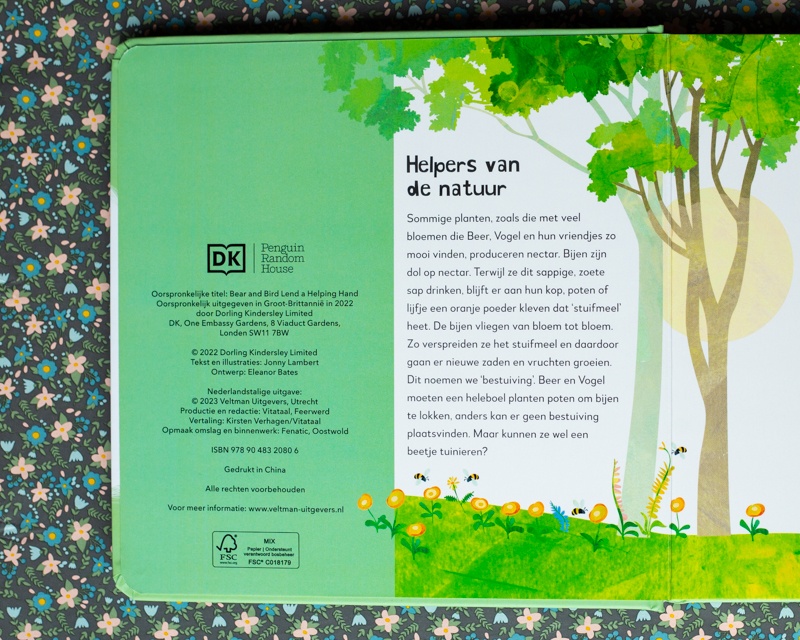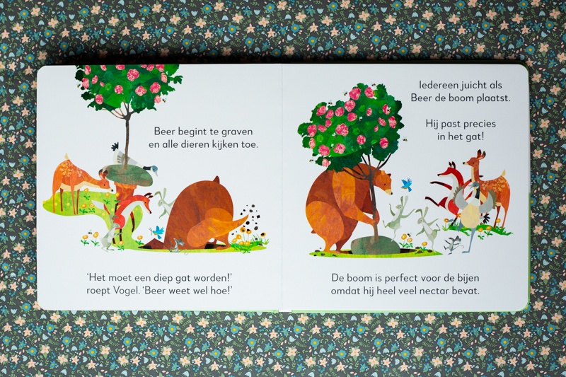 Beer en Vogel helpen een handje is een prachtig boekje voor peuters. En is een vrolijke kennismaking met tuinieren. De kartonnen pagina’s zijn bestand tegen kleine kinderhandjes. Door de tekst op rijm leest het boekje fijn voor. En de illustraties zijn erg verfijnd. Ook dit prentenboek leent zich voor interactief voorlezen door de onderliggende boodschap.