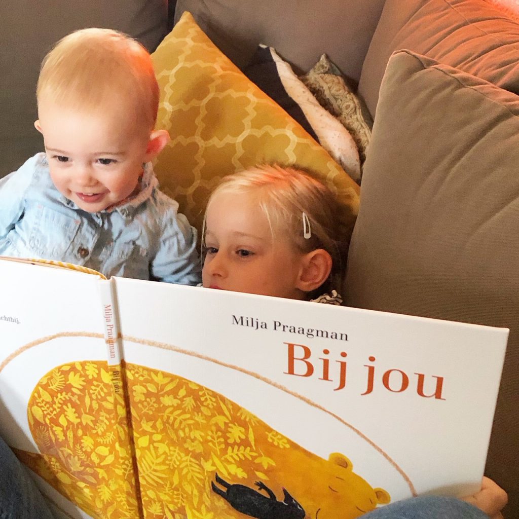 Wij houden van de boeken van Milja en uitgeverij Leopold en Bij jou is meteen ook geliefd. De illustraties zijn zo lief en warm, zonder zoetsappig te zijn. Herkenbaar en niet saai. We kunnen best een tijdje op een pagina blijven hangen om alleen maar naar de illustratie te kijken. De teksten lezen fijn voor en mijn dochter van zes kan ook al letters en woordjes herkennen. Het verhaal is duidelijk maar laat ook ruimte voor eigen gedachtes.