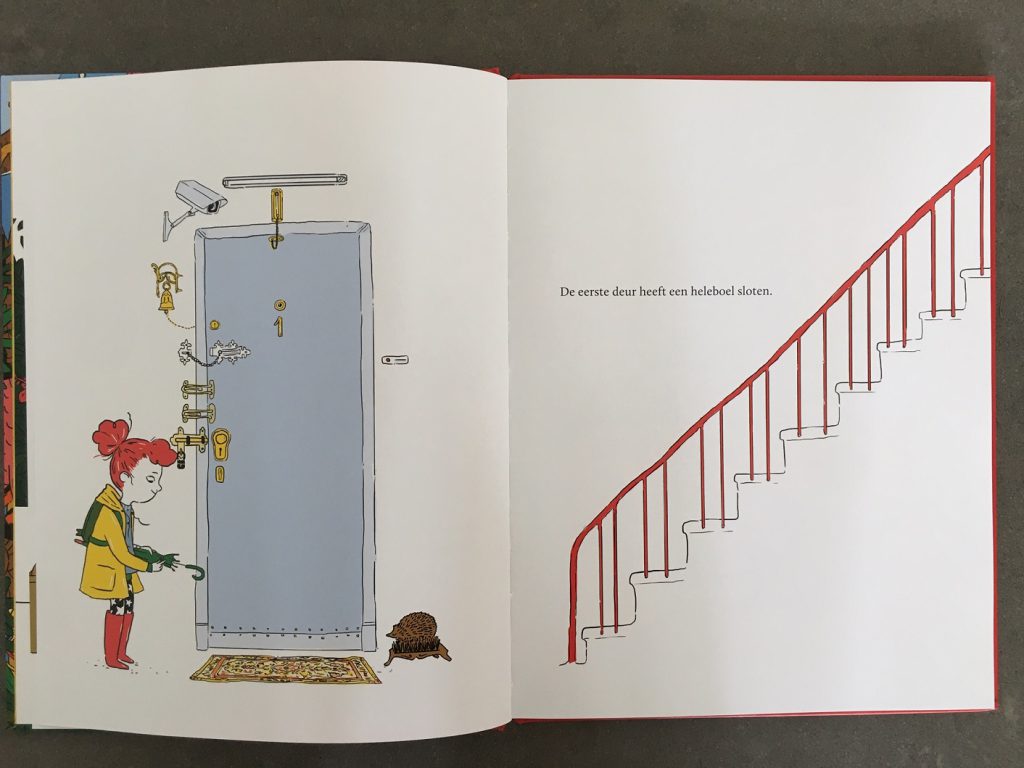 Wie zouden er wonen achter de deur met zoveel sloten erop? En achter die deur met de dweil (waar het zo naar vis stinkt) daar zal vast een piraat met zijn liefje wonen.