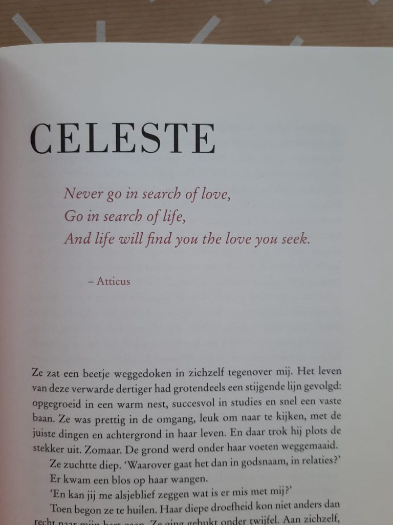 Het is interessant om de verhalen te lezen. Dat hoeft niet op volgorde zoals ze in het boek staan, en het hoeft ook zeker niet in 1 keer. Er komen allerlei soort mensen voorbij: mensen die fysiek ziek zijn en daar mentaal last van hebben, burn-out achtige klachten, depressie, het gewoon niet meer weten. Oud, jong, man, vrouw. Door de manier van schrijven, herken je snel dingen in je eigen leven of uit je omgeving in de verhalen van de cliënten. Maaike en Martin bijvoorbeeld, die vast zitten in patronen en een moeilijke communicatie in hun relatie. Ze leren wat er onder hun irritatie en boosheid zit: wat vraag/zeg je nu echt tegen je partner, wat zit er onder? Maar ook in Andres herken ik dingen: wie ben je echt ten op zichtte van wie je denkt dat je moet zijn?